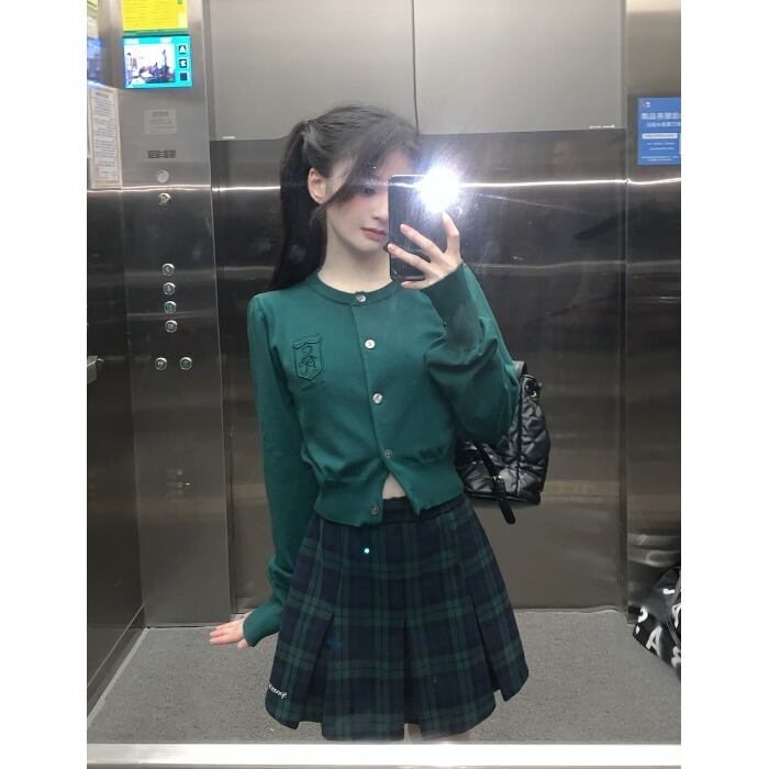 オータム薄手ニットカーディガン格子柄プリーツスカート 秋物 10/5 秋冬 オータム ウインター ナチュラル mi4689696031064