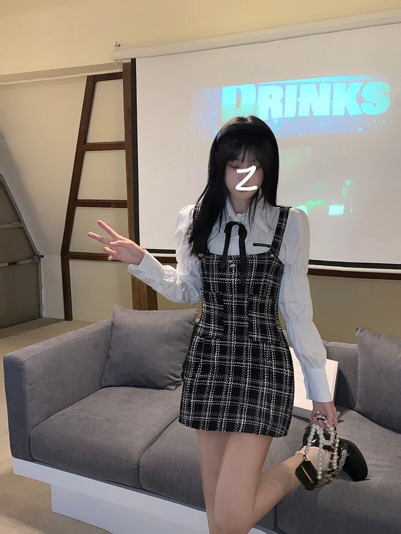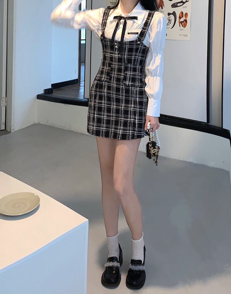 色:ホワイトアルファベットシャツ,Xiaoxiangスタイルのサスペンダースカート