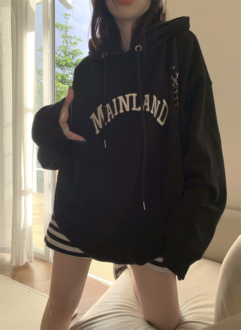刺繍ブラックフードセーター オータムルーズトップス 秋物 10/5 秋冬 オータム ウインター ナチュラル mi4697634272853