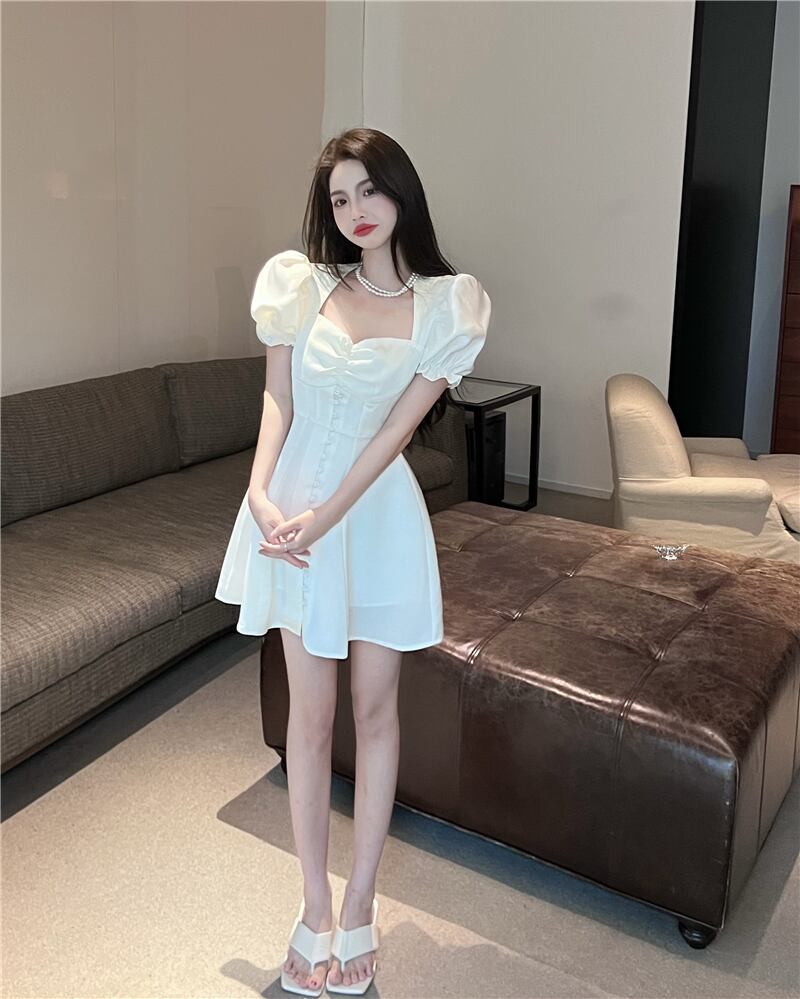 Vネックスリーブドレス サマースタイルウェスト薄手Aラインスカート 夏物 10/5 秋冬 オータム ウインター ナチュラル mi4623933688380