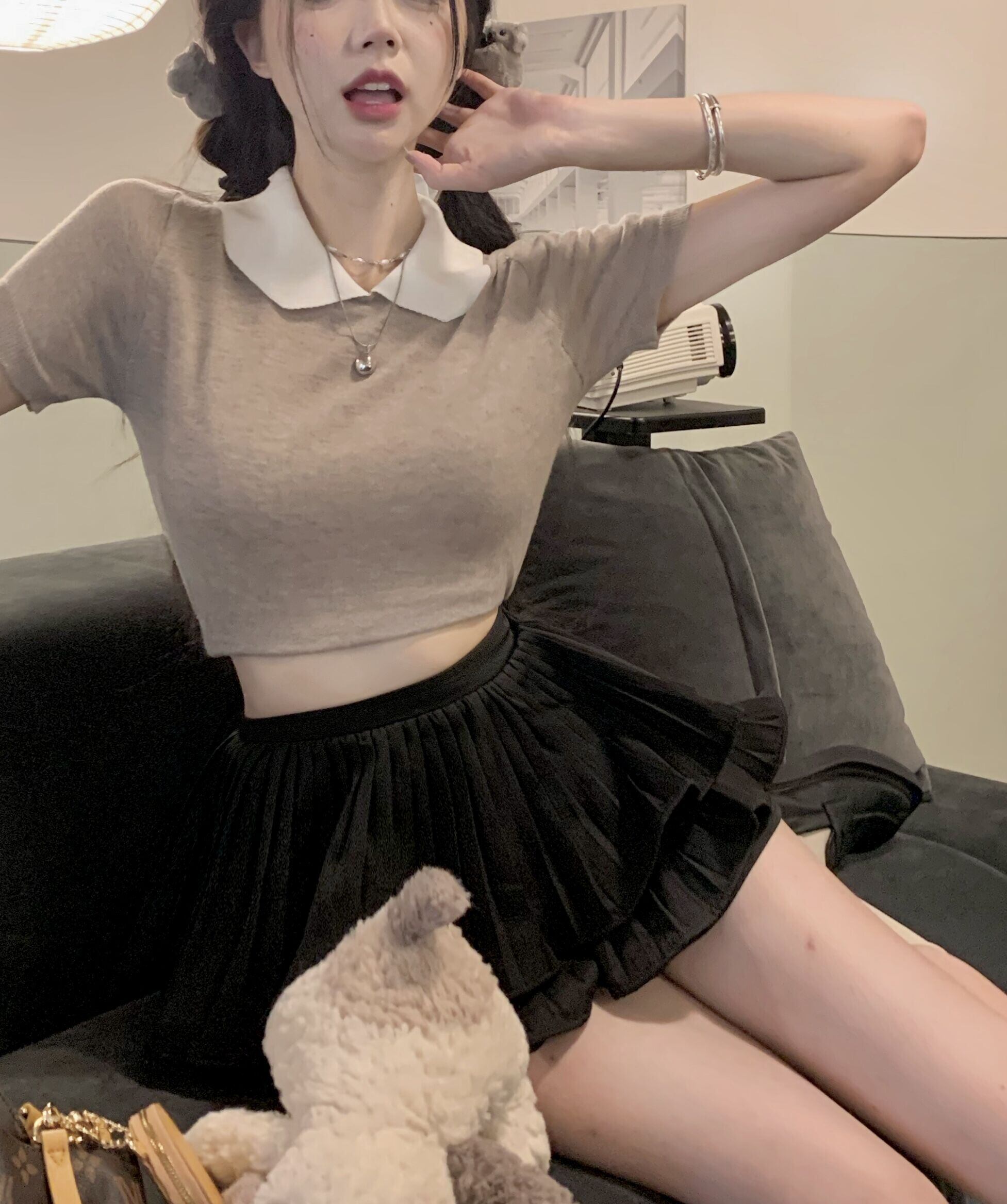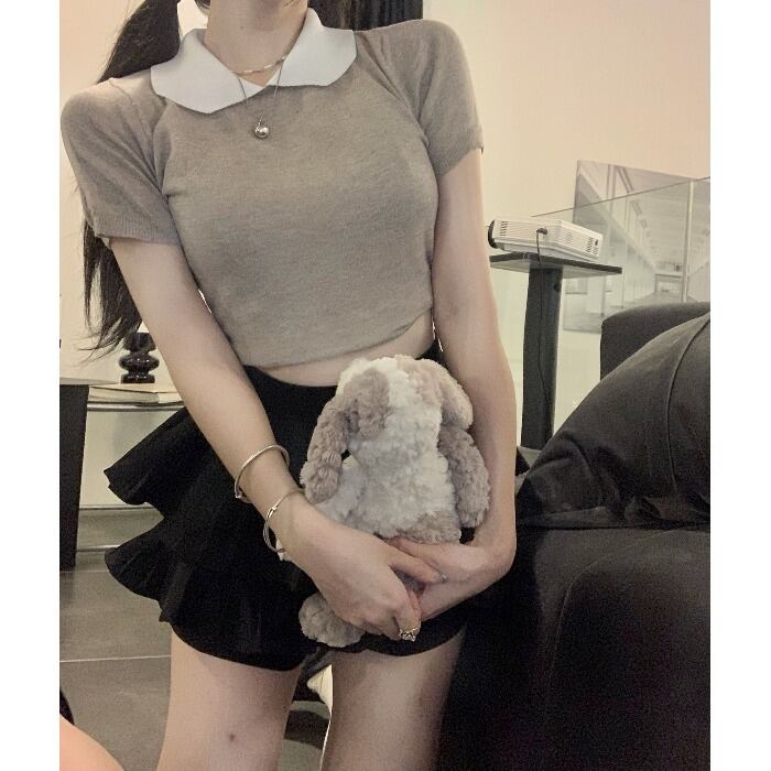 ショートニットTシャツ サマースリムトップス 夏物 10/5 秋冬 オータム ウインター ナチュラル mi4670897679607