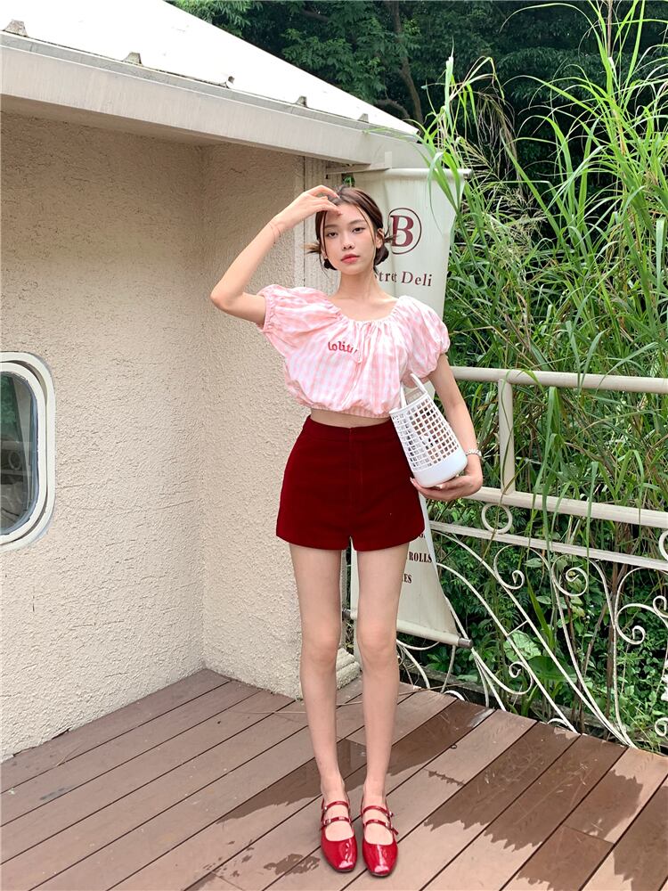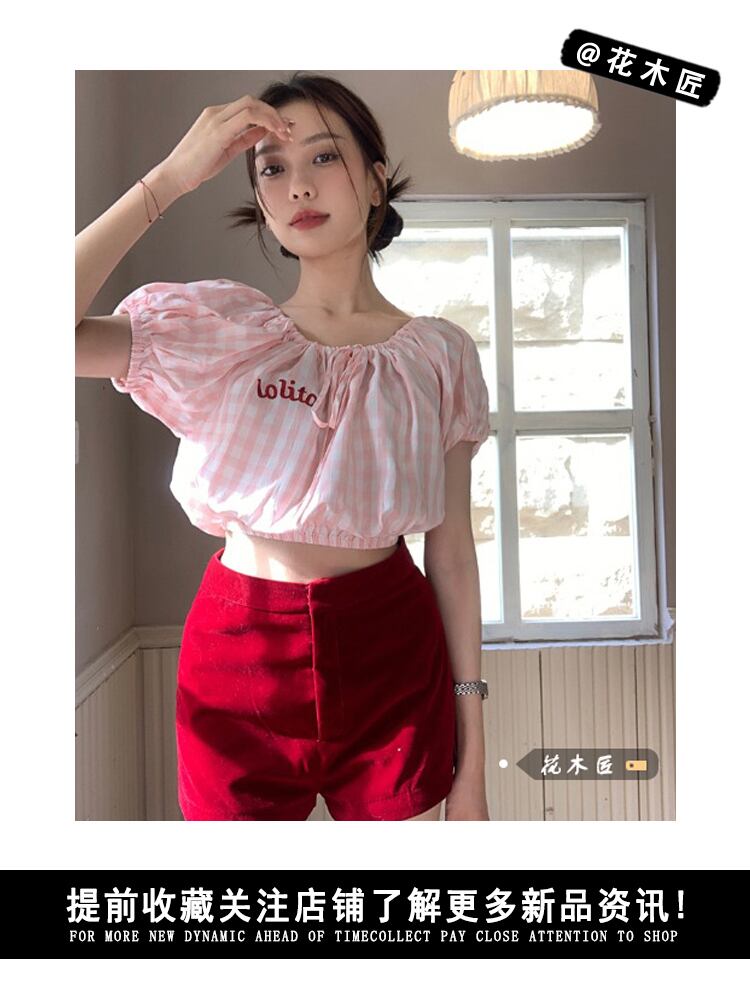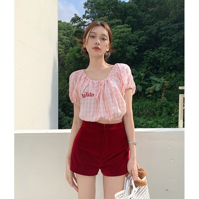 格子柄シャツ サマー薄手ショートトップス レース 大人ガーリー スウィート キュート カジュアル 夏物 レースアップ 10/5 秋冬 オータム ウインター ナチュラル mi4672747725498