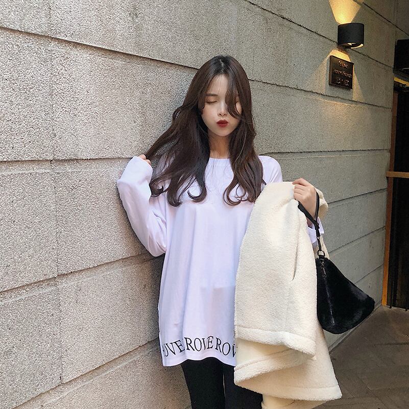ルーズTシャツ シャツ オータムラウンドネックトップス ロング 秋物 Oネック 10/5 秋冬 オータム ウインター ナチュラル mi4675981445599