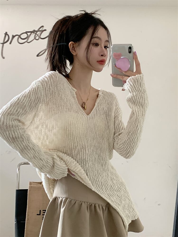 カラーセーター オータム薄手トップス ロング 秋物 10/5 秋冬 オータム ウインター ナチュラル mi4646470133592