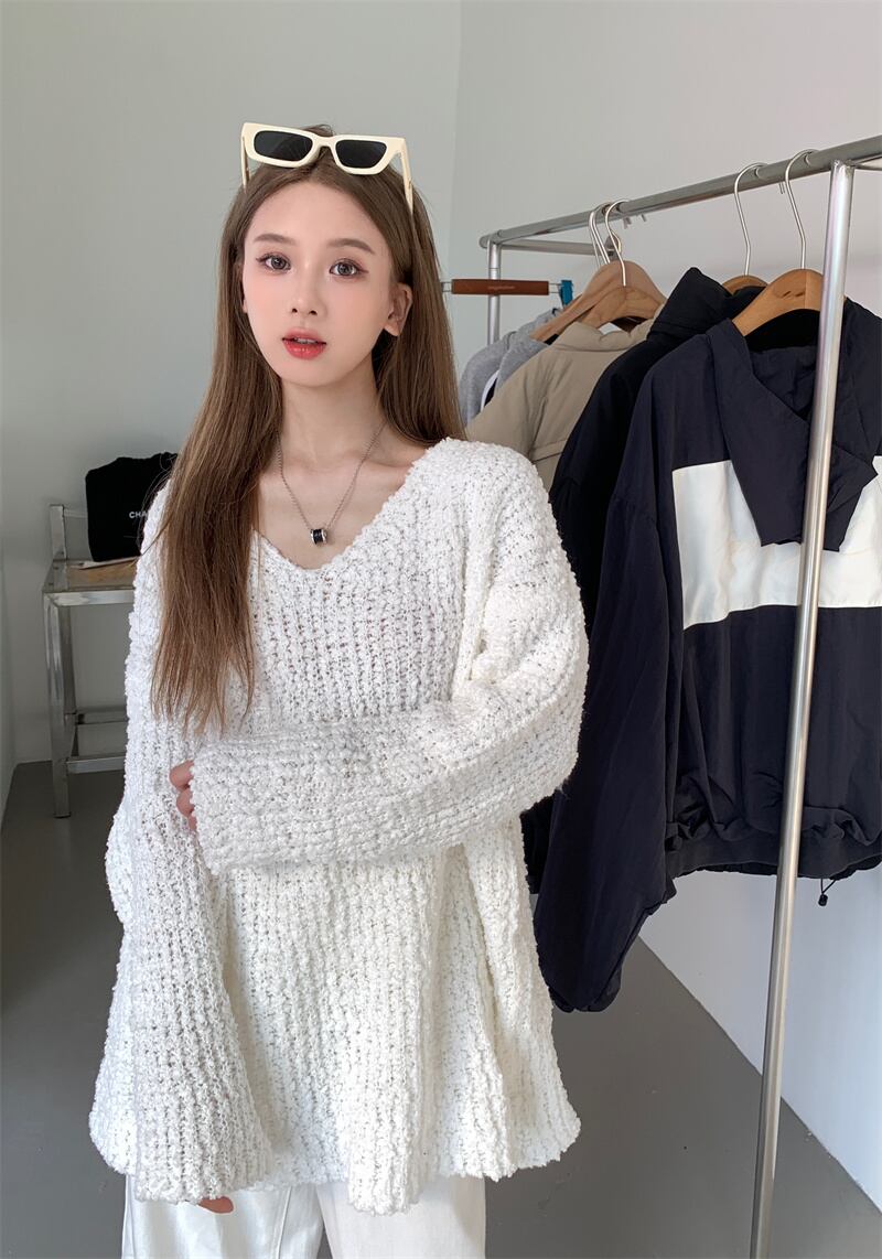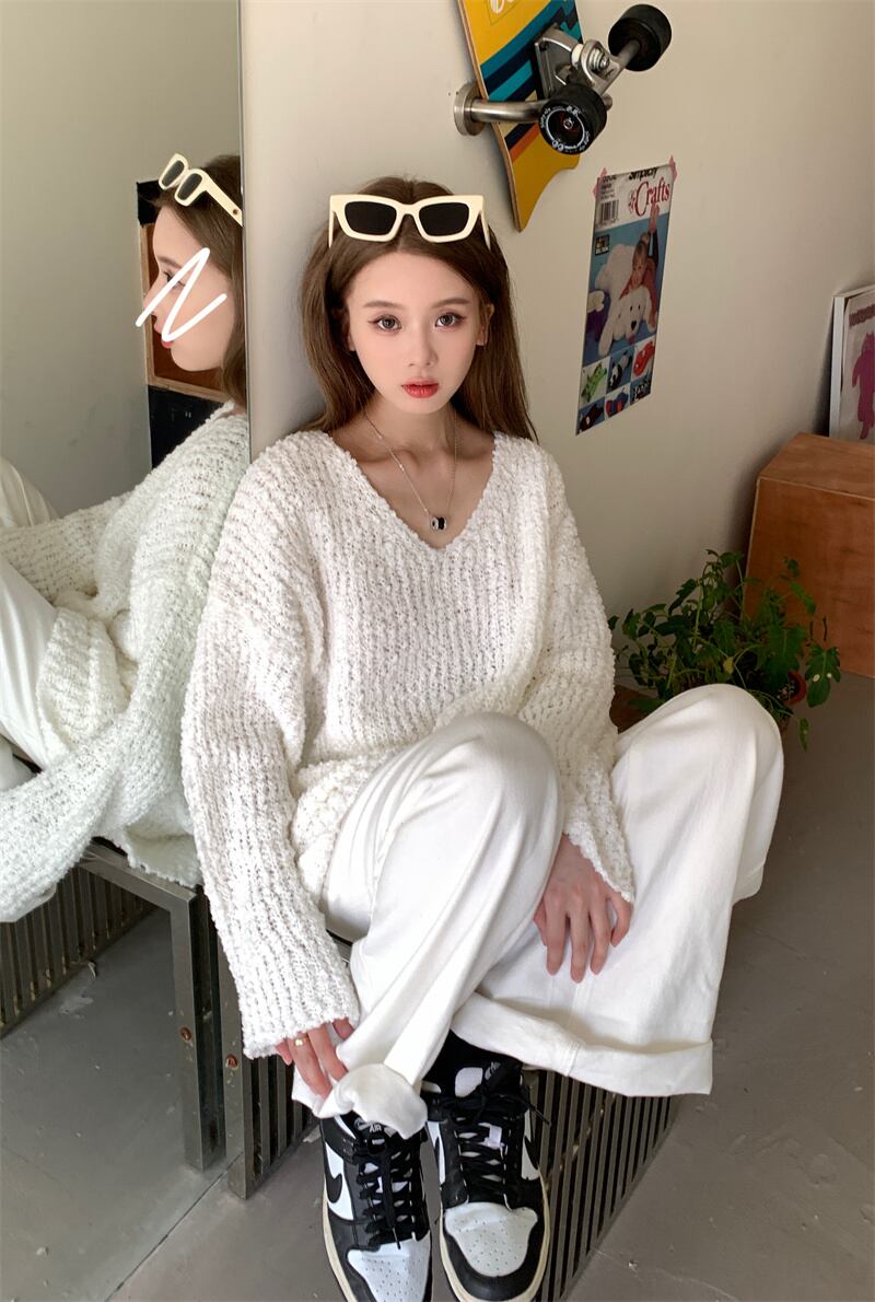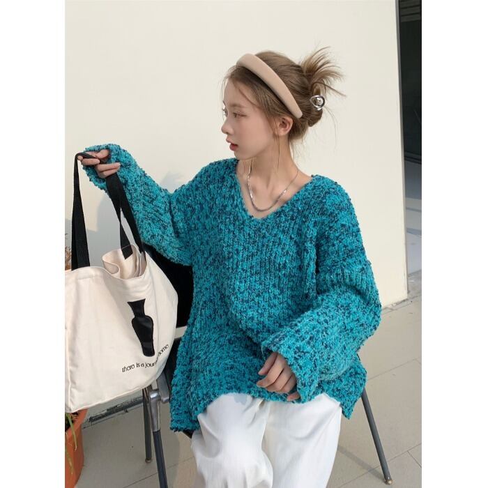 Vネックニットセーター オータムスタイルルーズトップス 秋物 10/5 秋冬 オータム ウインター ナチュラル mi4694522615798