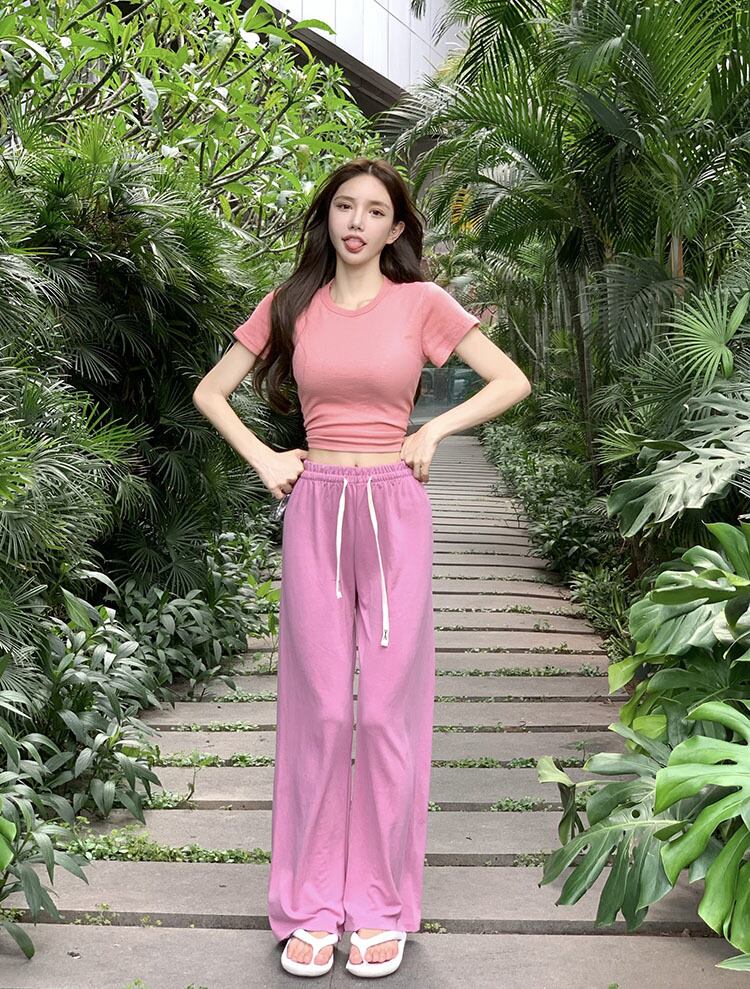 Tシャツ サマースリムトップス ピンク 夏物 ピュア 10/5 秋冬 オータム ウインター ナチュラル mi4657273671580