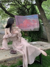 Flowerデザイン ホルタードレス サマーウェストAラインスカート 夏物 フラワーデザイン 10/5 秋冬 オータム ウインター ナチュラル mi4623989684329