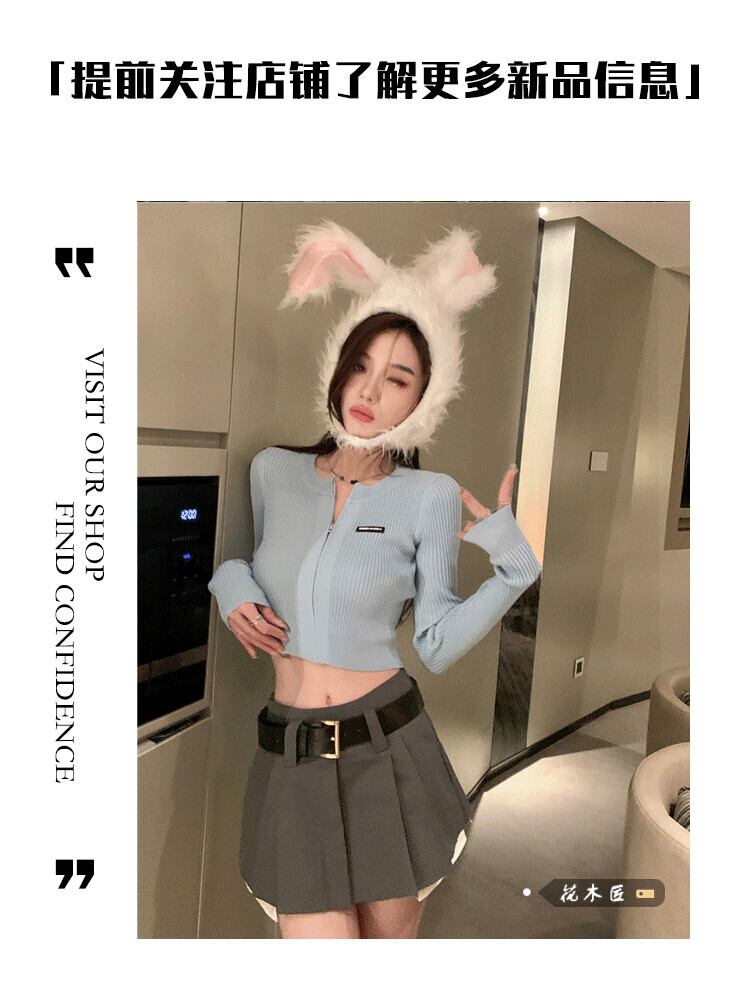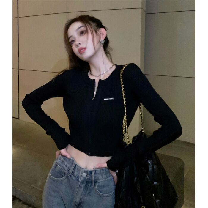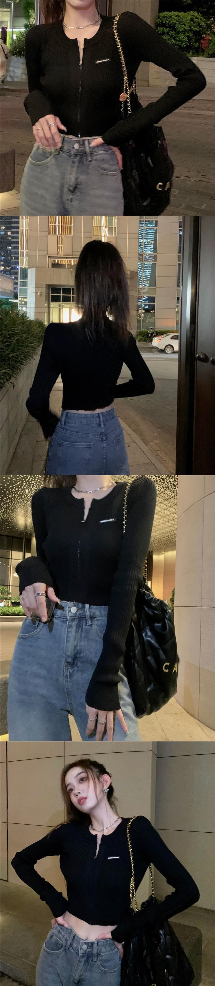 スリムニットカーディガンオータムショートジッパートップス ロング 秋物 10/5 秋冬 オータム ウインター ナチュラル mi4698484181323