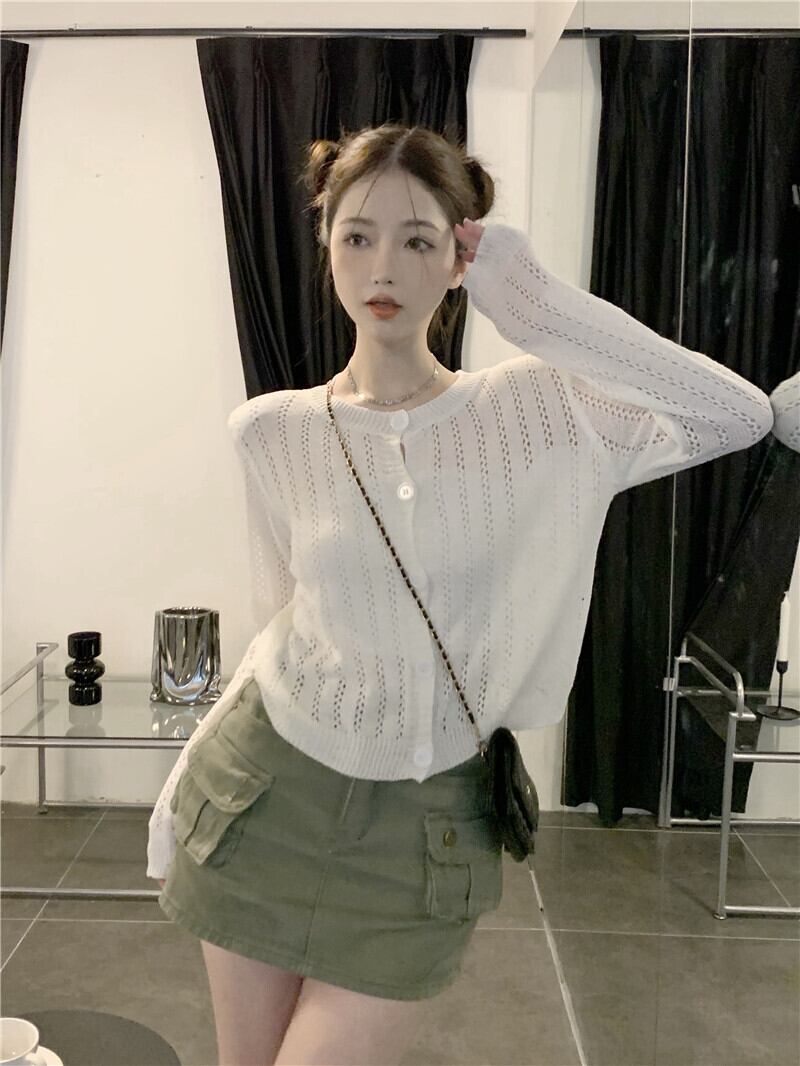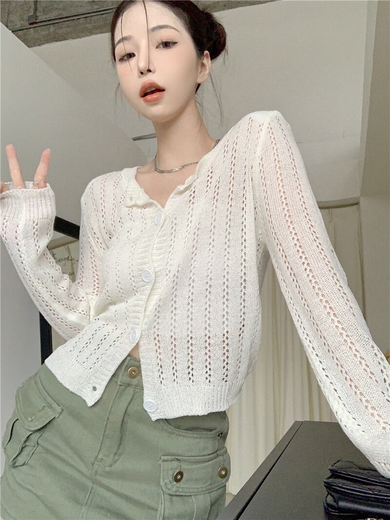 ブラックニットカーディガンジャケット オータム薄手ブラウス ルーズショートトップス ロング 秋物 10/5 秋冬 オータム ウインター ナチュラル mi4633599611715