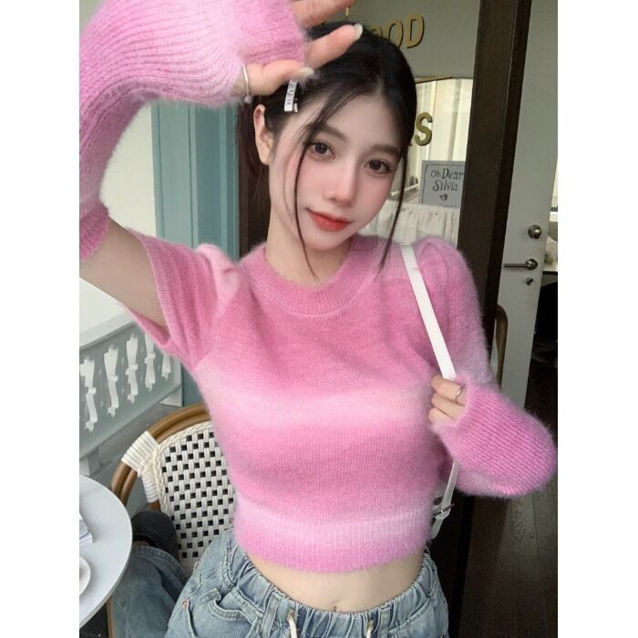 ニットセーター オータムスリーブ薄手トップス 大人ガーリー スウィート キュート カジュアル 秋物 10/5 秋冬 オータム ウインター ナチュラル mi4660949889329