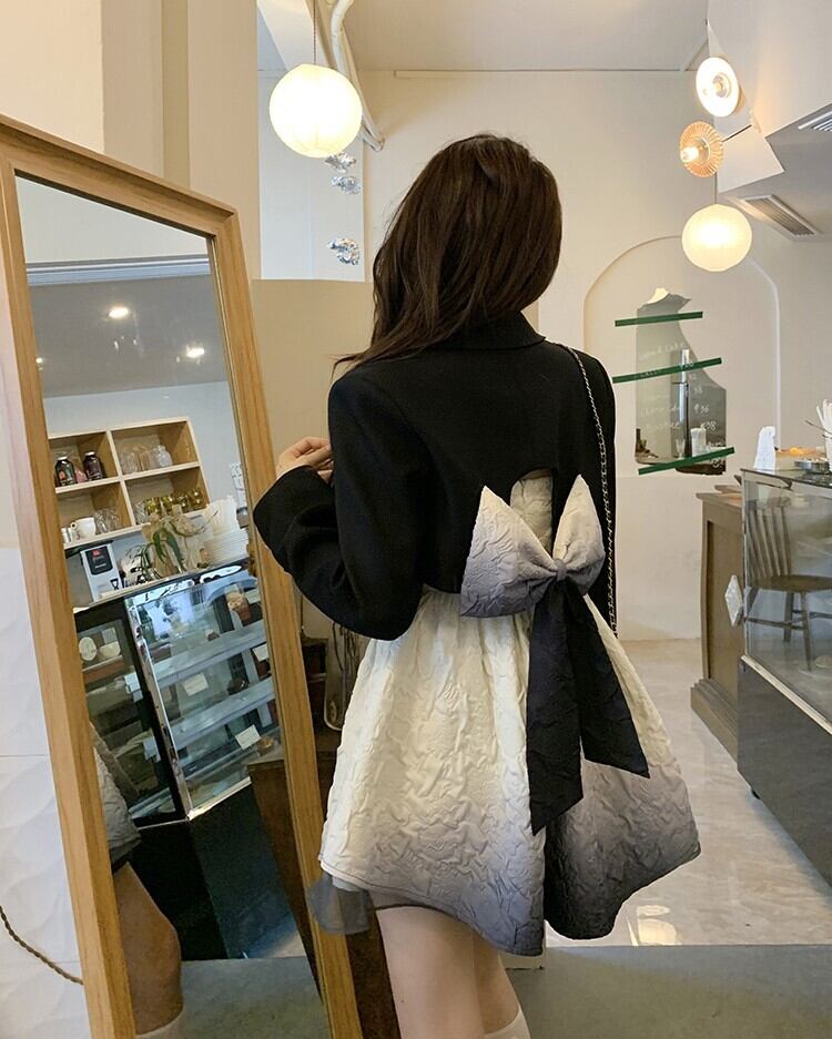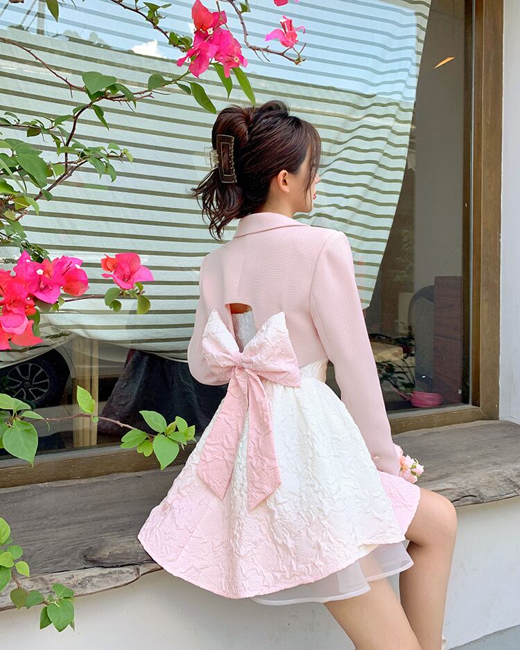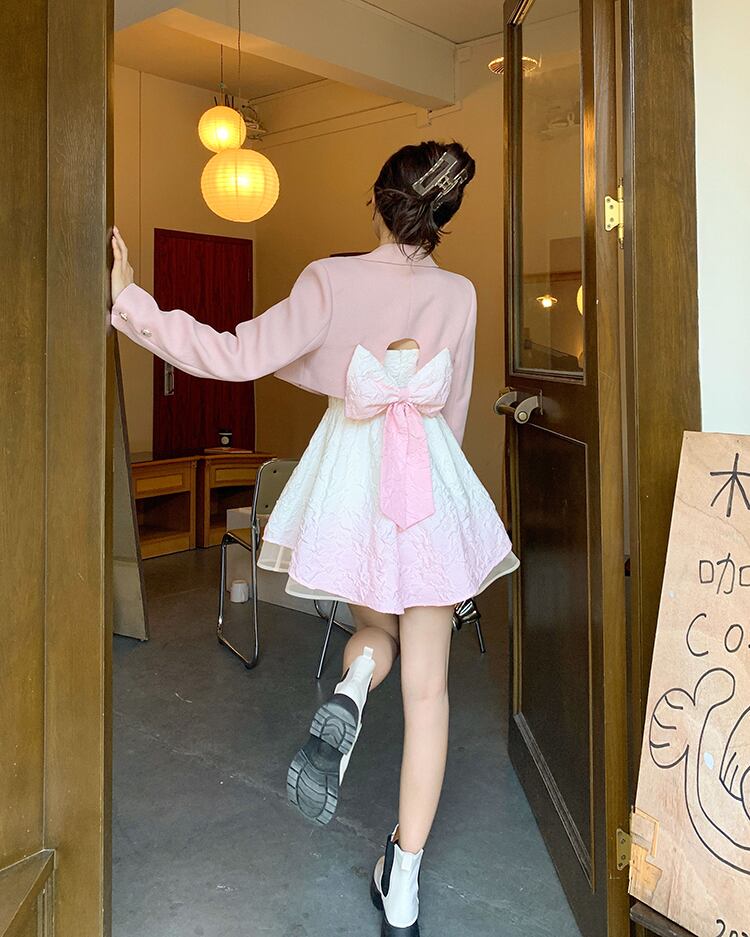 色:ブラックジャケットワンピース,ピンクのジャケット一枚,ブラックサスペンダースカート,ピンクのサスペンダードレス
