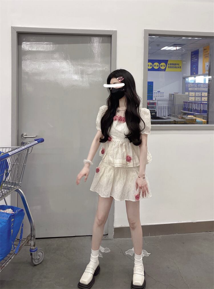 Flowerデザイン カラースリーブシャツ サマー薄手トップス 大人ガーリー スウィート キュート カジュアル 夏物 フラワーデザイン スクウェア 10/5 秋冬 オータム ウインター ナチュラル mi4648461478941