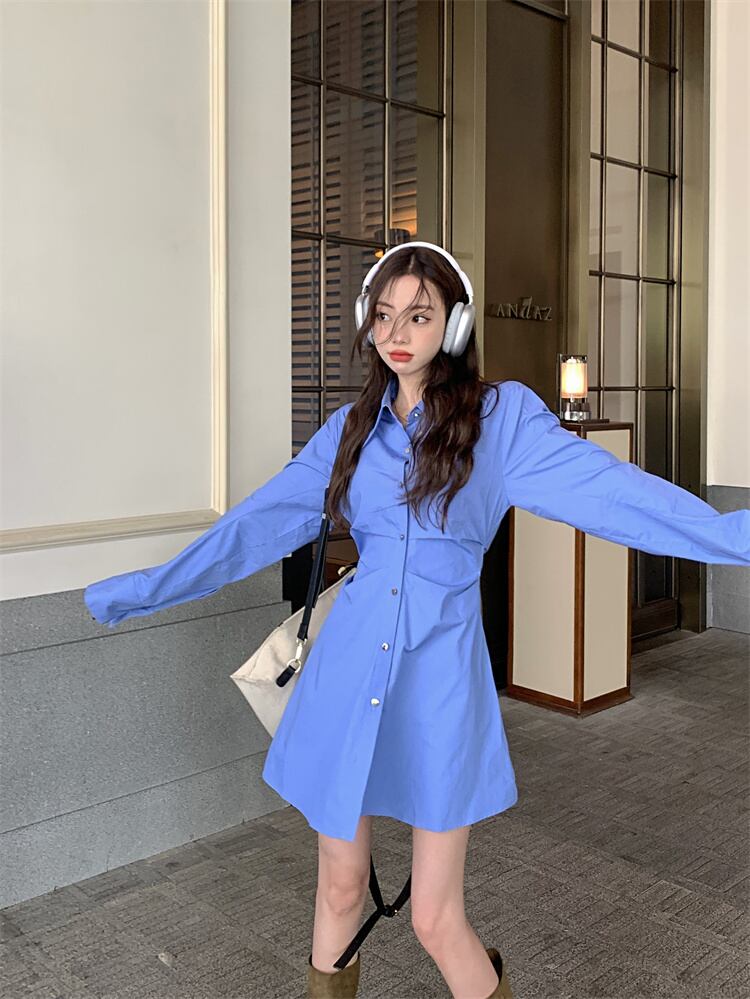 ホワイトシャツ ドレス オータムウェストAラインスカート ロング 秋物 10/5 秋冬 オータム ウインター ナチュラル mi4648025508495
