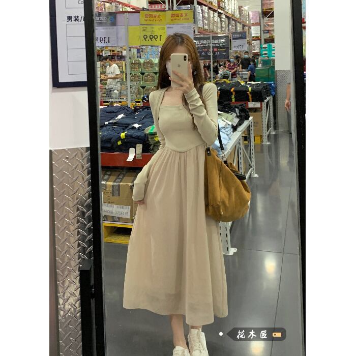 スタイルロングドレス オータムウェストスリムスカート カジュアル 秋物 ステッチ 10/5 秋冬 オータム ウインター ナチュラル mi4677463705767