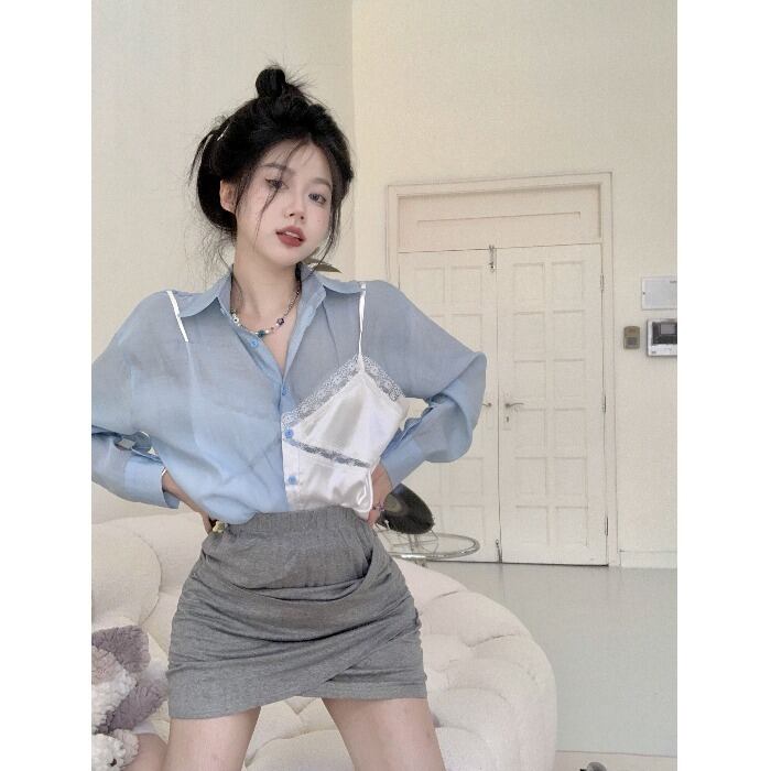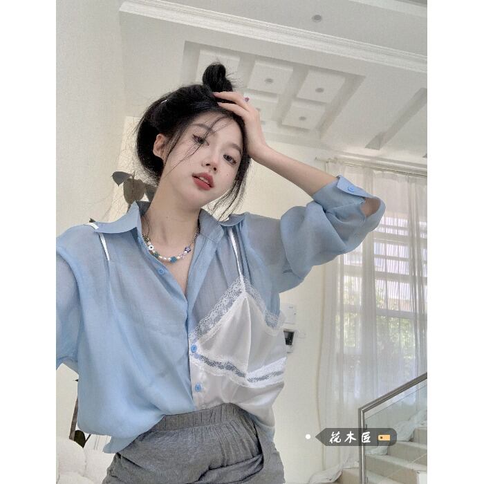 スタイル薄手シャツ オータムレースルーズトップス 秋物 ステッチ 10/5 秋冬 オータム ウインター ナチュラル mi466140645836