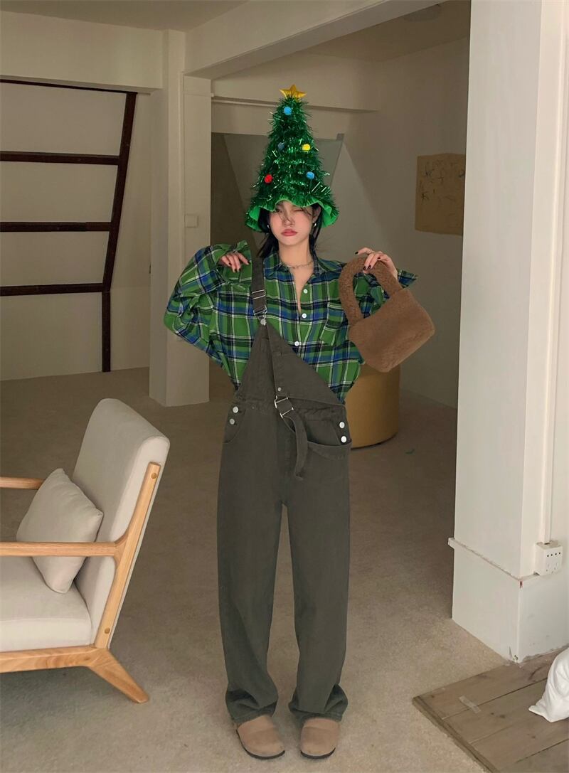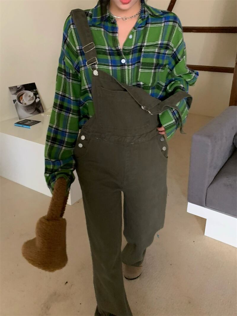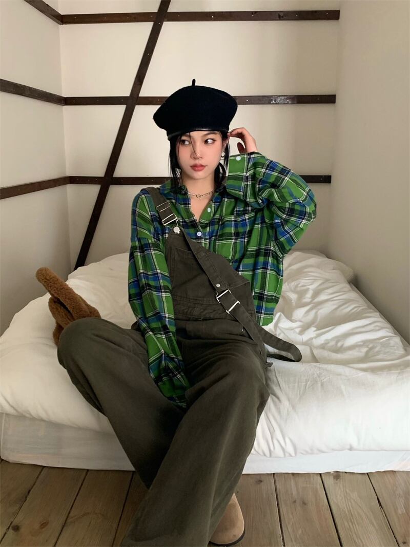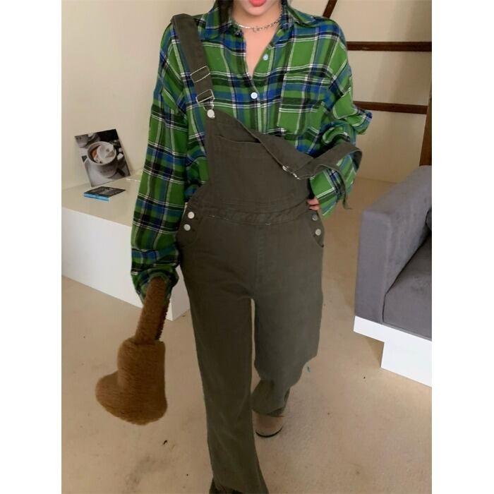 スタンダードオータム格子柄シャツ オーバーオール レトロ ストリート 秋物 10/5 秋冬 オータム ウインター ナチュラル mi4610393252560
