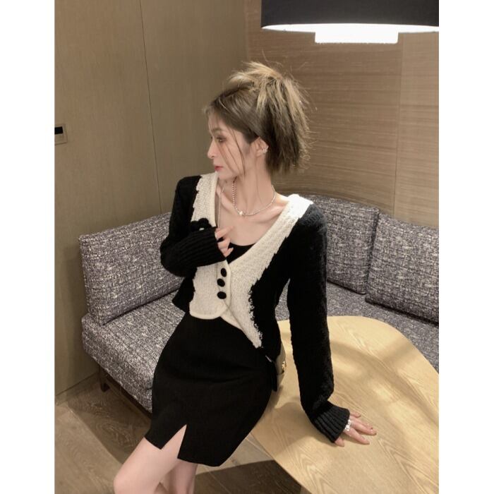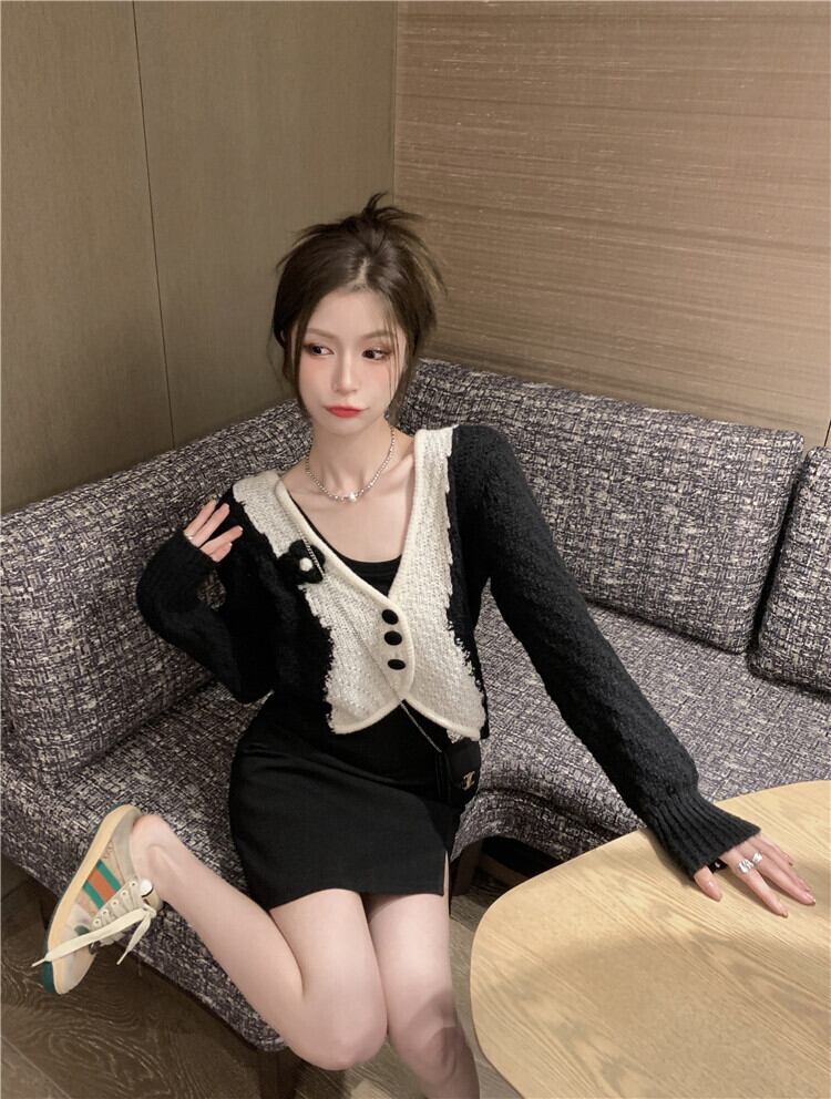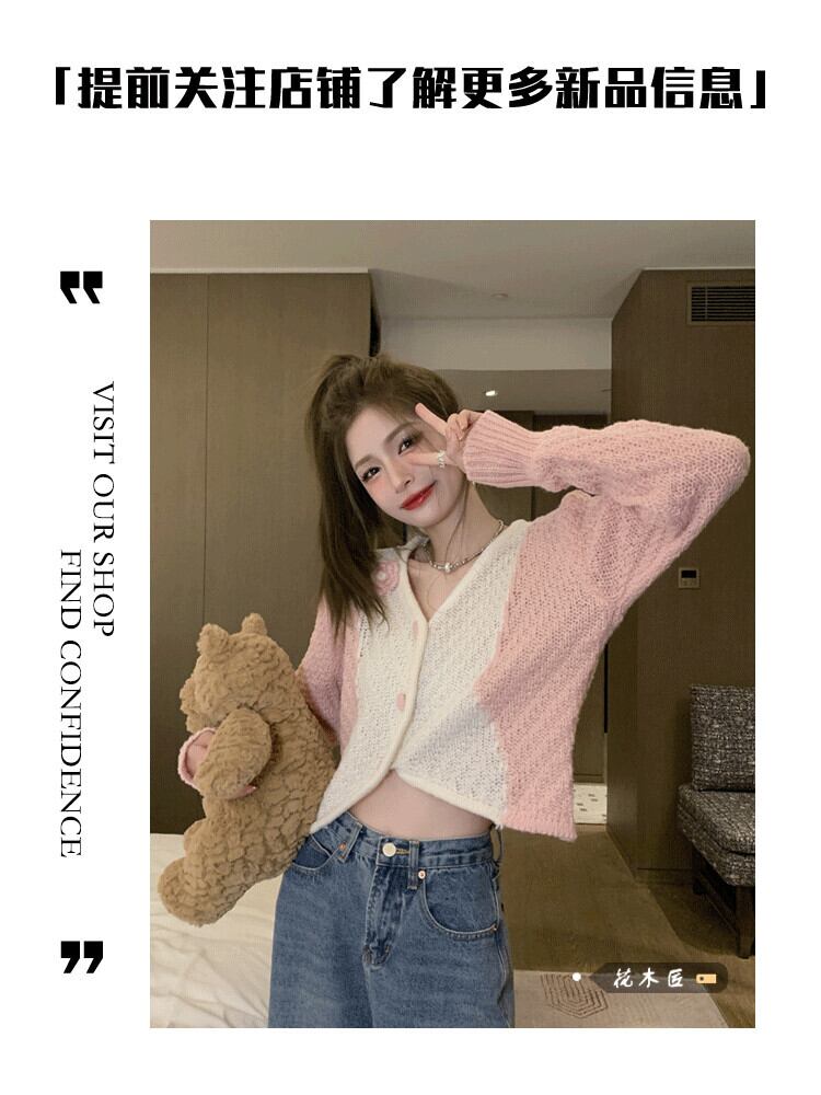 Vネックニットセーター ジャケット オータムルーズショート薄手カーディガントップス 秋物 10/5 秋冬 オータム ウインター ナチュラル mi4636461541705