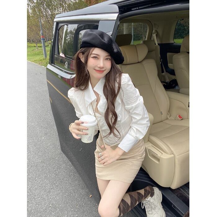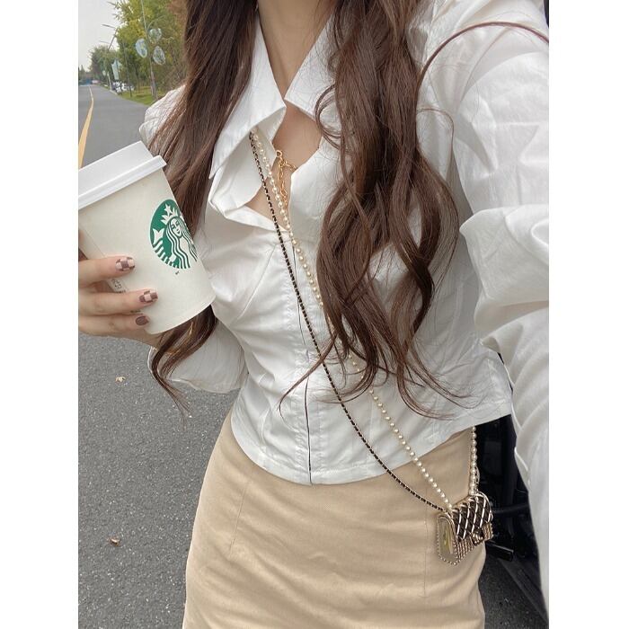プリーツホワイトシャツ オータム薄手ショートトップス 秋物 10/5 秋冬 オータム ウインター ナチュラル mi4640264908500