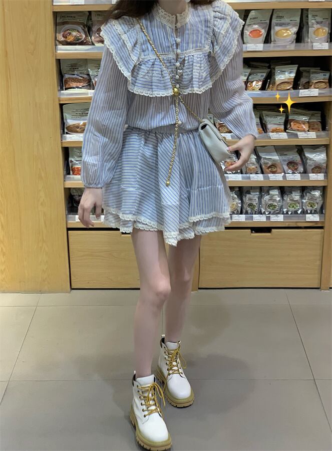 ストライプスカート オータムシャツ 大人ガーリー スウィート キュート カジュアル 秋物 10/5 秋冬 オータム ウインター ナチュラル mi4668336126727