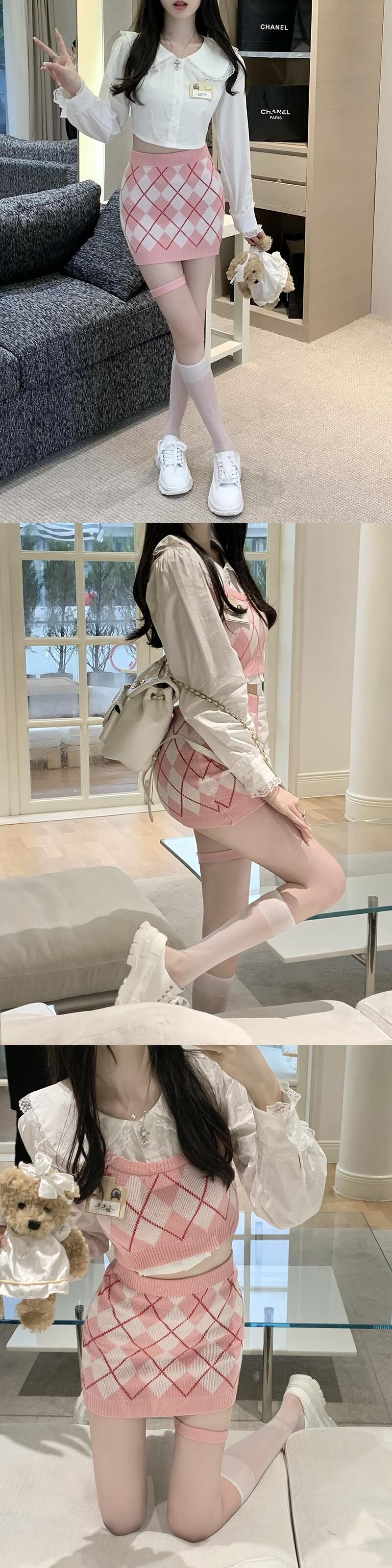 スタンダードスタイルオータムニットスカート レースシャツ セット レトロ 秋物 10/5 秋冬 オータム ウインター ナチュラル mi4681790413808