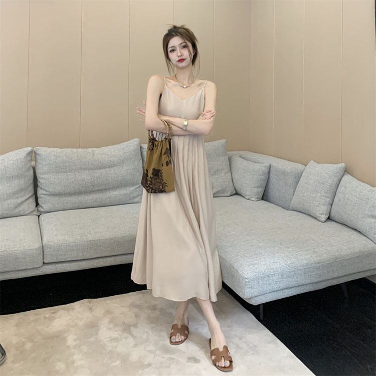 色:クリームホワイトトップ,優しいアプリコットのスリップドレス