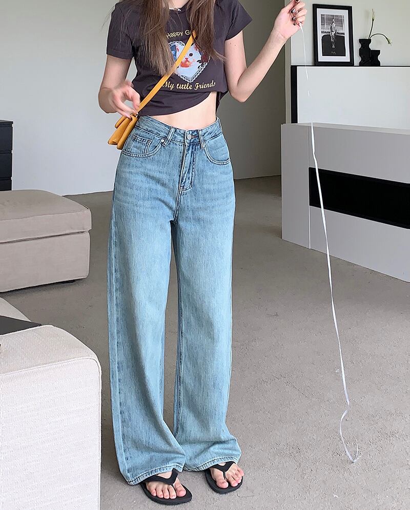 ハイウェストウェストジーンズ オータムルーズ薄手パンツ 秋物 10/5 秋冬 オータム ウインター ナチュラル mi4610713723912