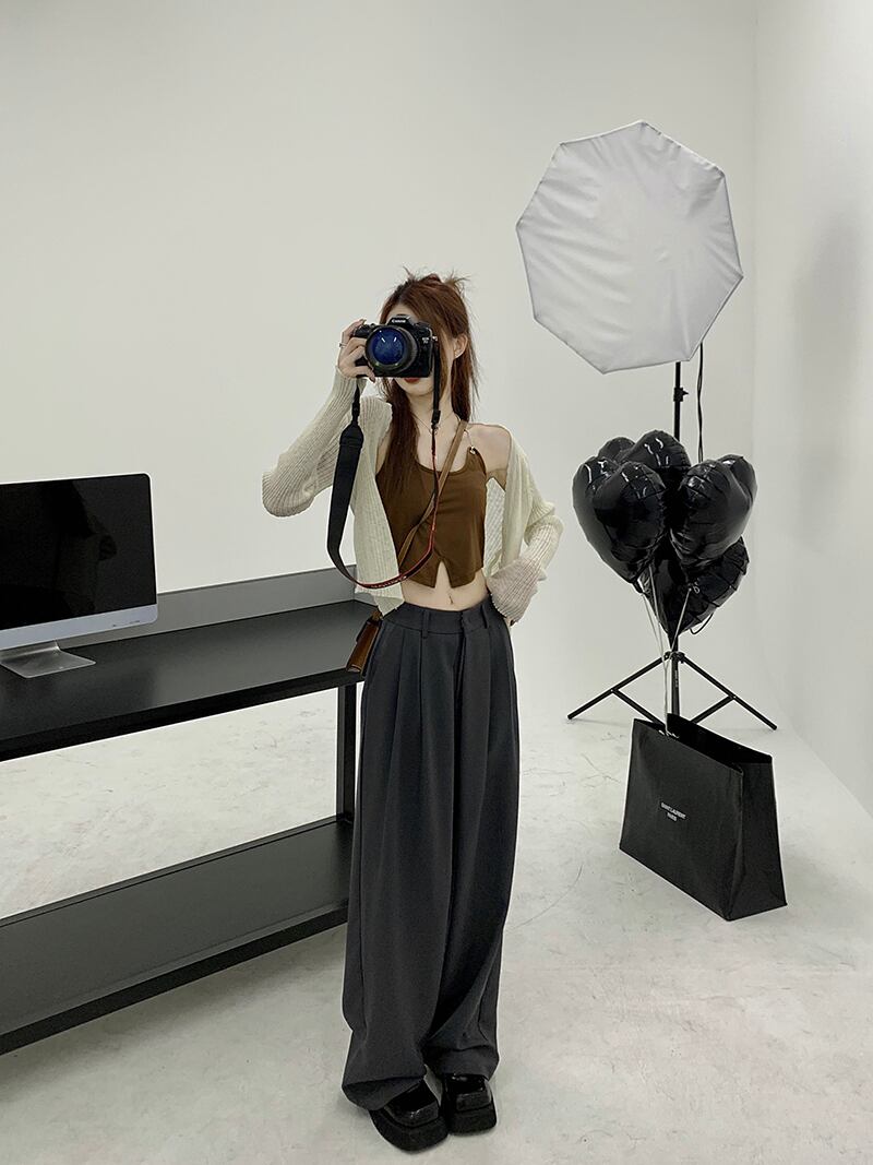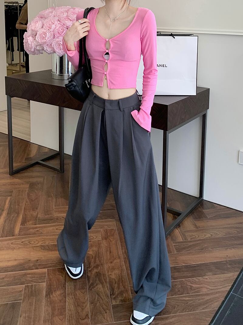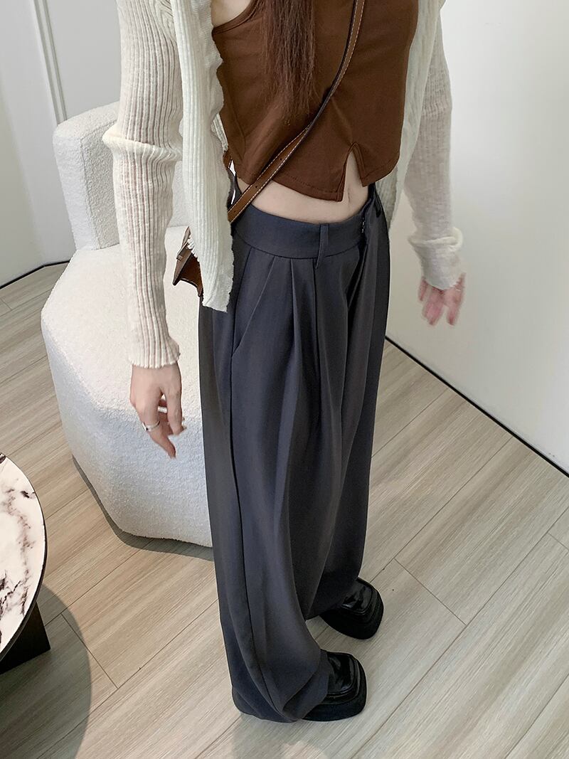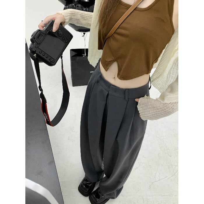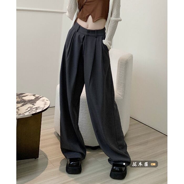パンツ グレーハイウェストカジュアルオータムルーズ 秋物 10/5 秋冬 オータム ウインター ナチュラル mi4629854663952