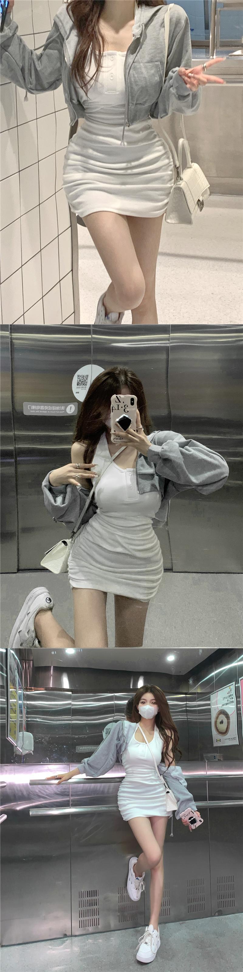 ソリッド カラーホルタープリーツドレス サマーウェスト薄手ショートスカート 夏物 ソリッドカラー 10/5 秋冬 オータム ウインター ナチュラル mi4648521590752