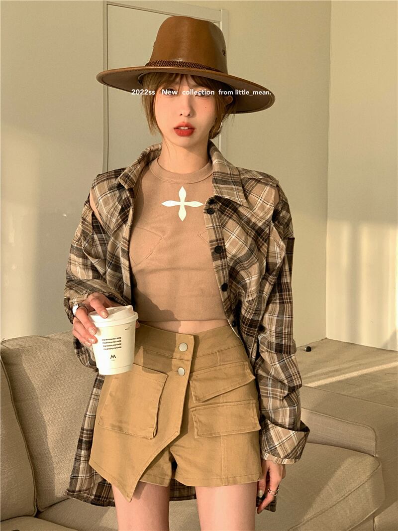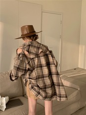 スタンダード格子柄シャツ オータムルーズトップス ロング レトロ 秋物 10/5 秋冬 オータム ウインター ナチュラル mi4685721361066