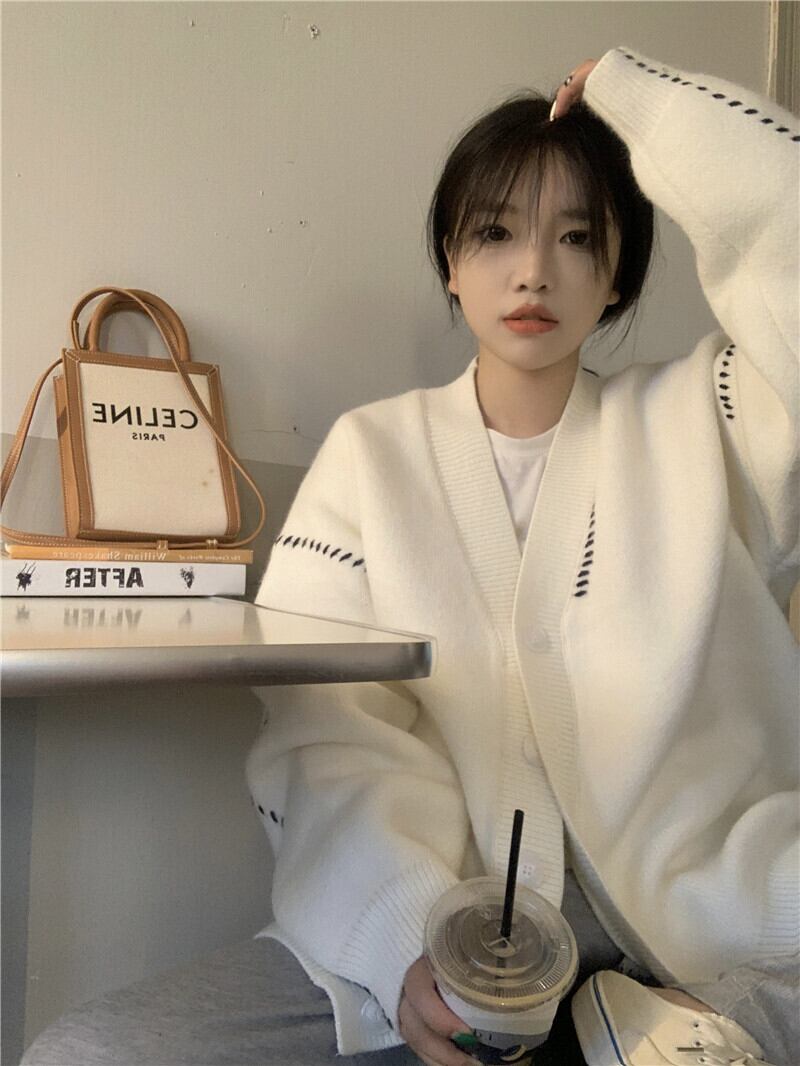 ルーズスタイルセーター コート オータムVネックニットカーディガン ロング 秋物 10/5 秋冬 オータム ウインター ナチュラル mi4656127434979