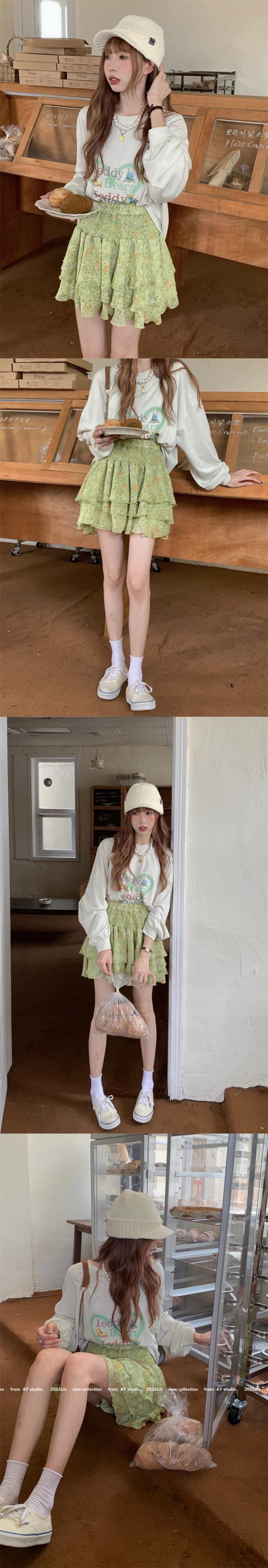 オータムプリントTシャツ フローラルショートスカート セット ロング 大人ガーリー スウィート キュート カジュアル 秋物 花柄 10/5 秋冬 オータム ウインター ナチュラル mi4627113188335