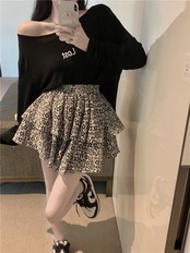 プリントブラックTシャツ オータムルーズトップス ロング 秋物 10/5 秋冬 オータム ウインター ナチュラル mi4651645591333