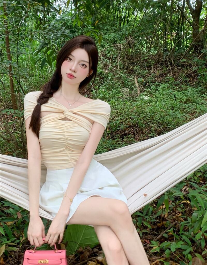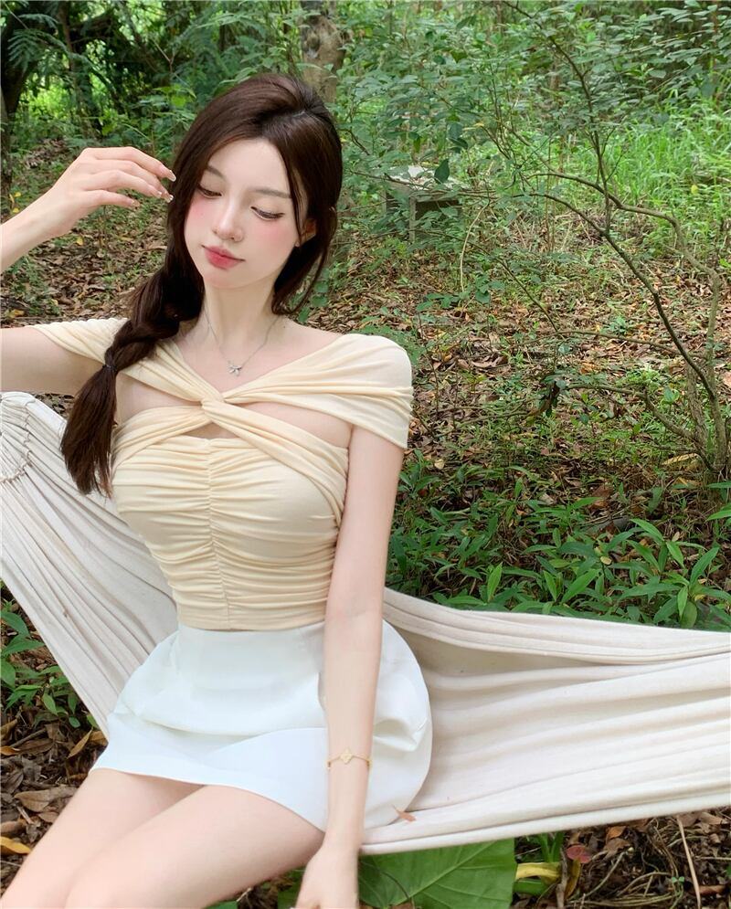 クロスプリーツサマースリムフィットバックショートトップス 夏物 10/5 秋冬 オータム ウインター ナチュラル mi4625748096124