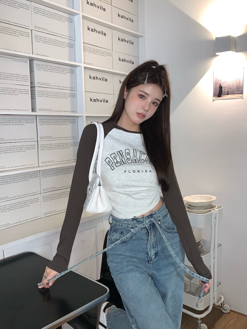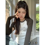 カラープリントTシャツ オータムスリムフィット薄手トップス ロング 秋物 10/5 秋冬 オータム ウインター ナチュラル mi4613738149463