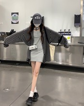 色:グレーベストシングルピース,ストライプカーディガンワンピース