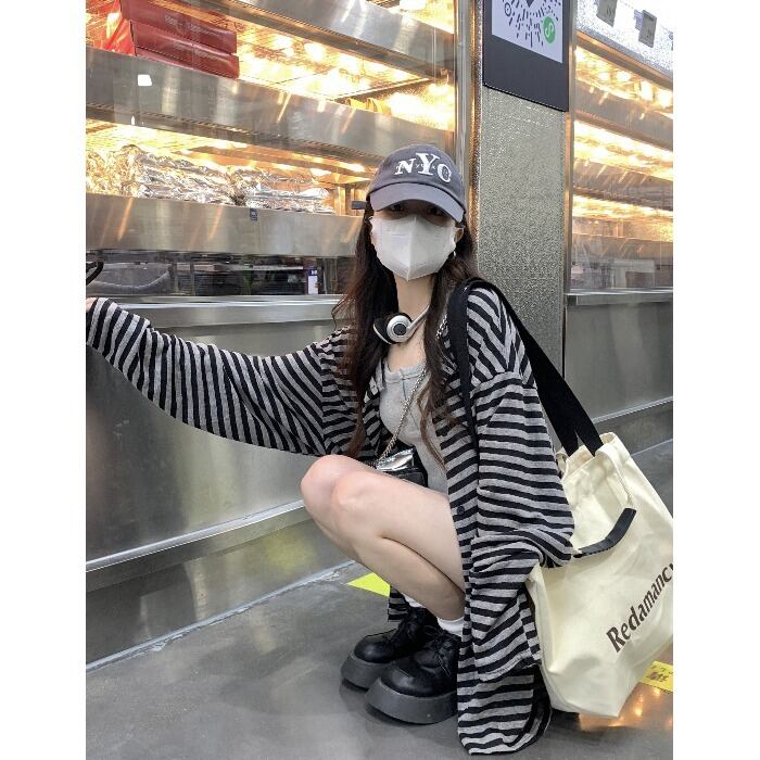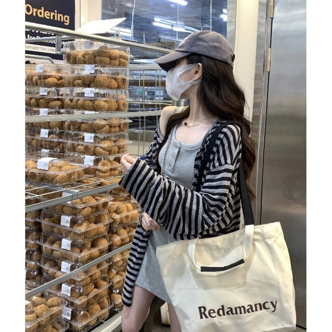 スタイルスタンダードストライプTシャツ オータム薄手ルーズカーディガントップス ロング レトロ 秋物 10/5 秋冬 オータム ウインター ナチュラル mi4636179720900