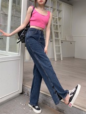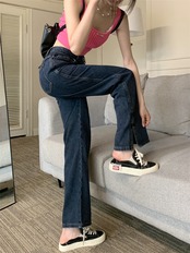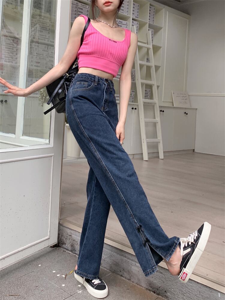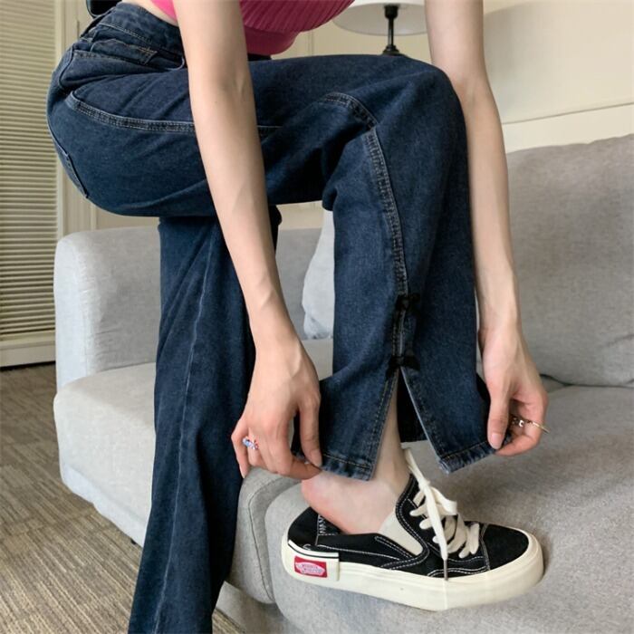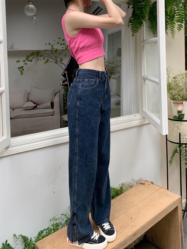 グレーブルーハイウェストウェストジーンズ オータムルーズ薄手パンツ 秋物 10/5 秋冬 オータム ウインター ナチュラル mi4622759276139