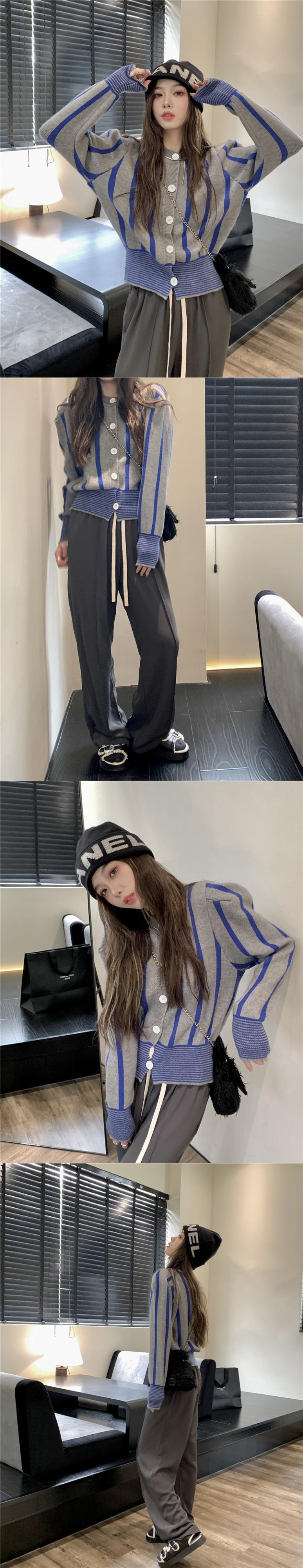 レッドスタンダードストライプニットカーディガンオータムルーズトップス ロング レトロ 秋物 10/5 秋冬 オータム ウインター ナチュラル mi469761468149