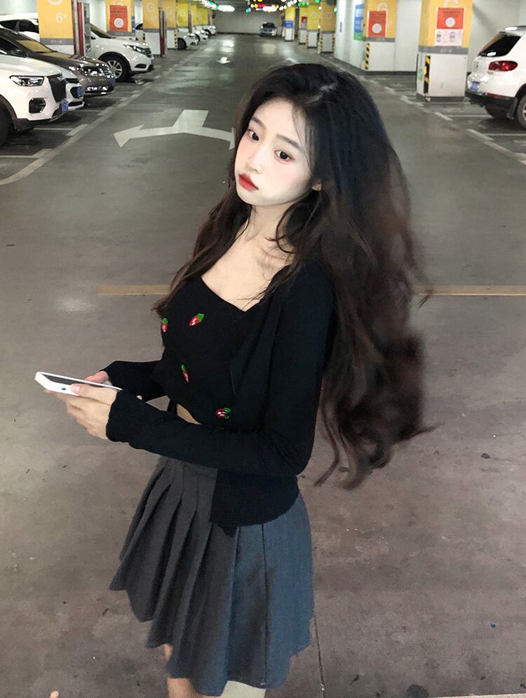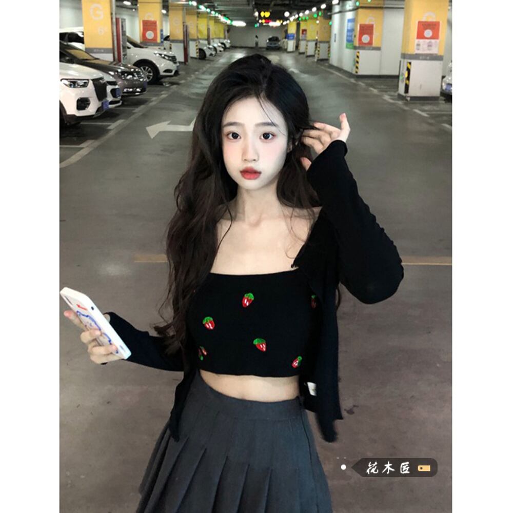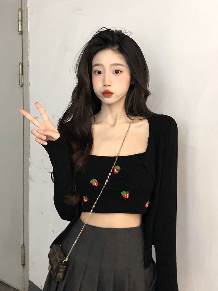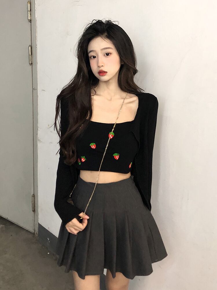 色:黒いちごベスト,ブラックカーディガンジャケット