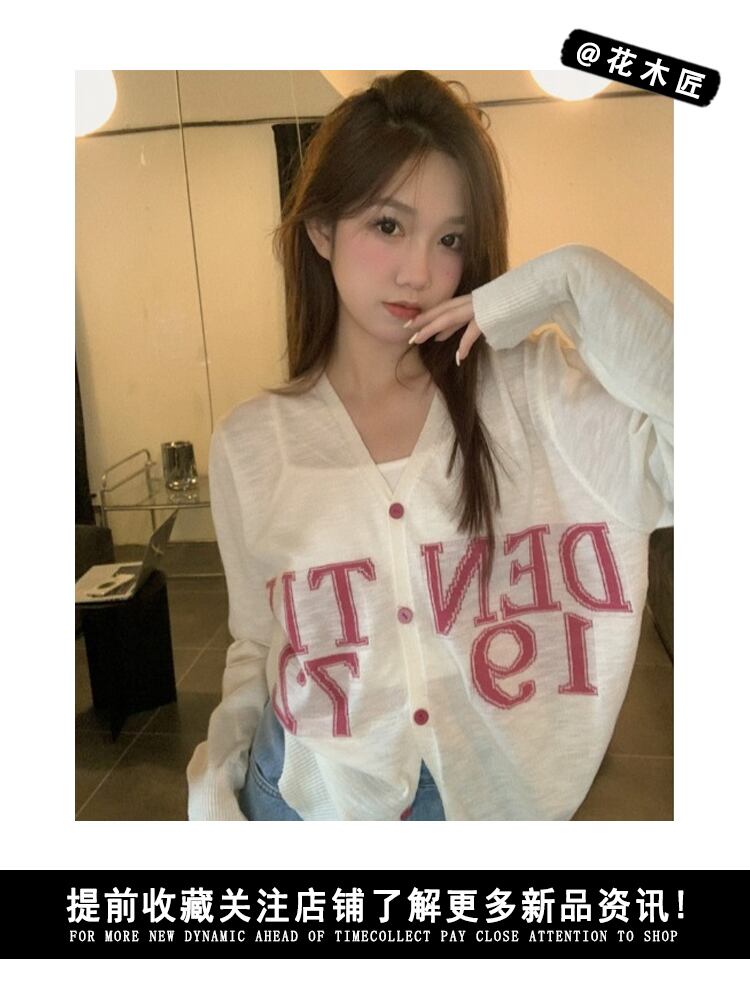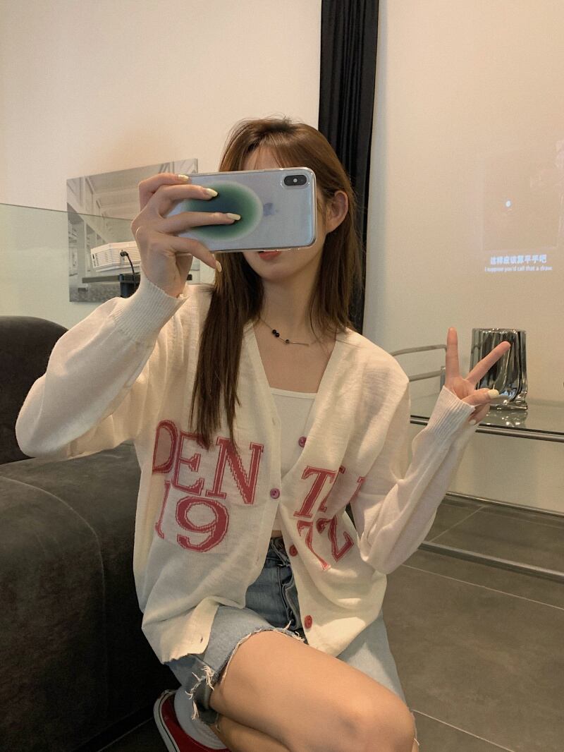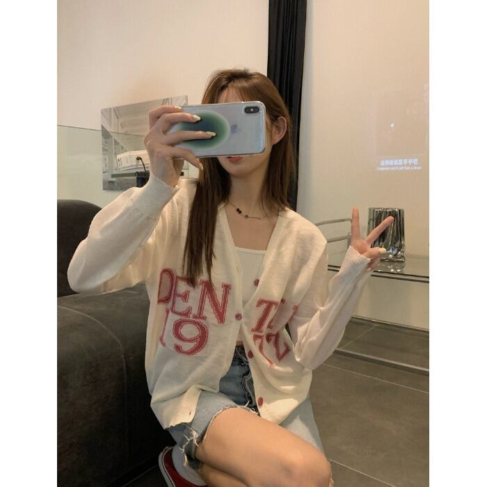 カラープリントニットカーディガンオータムVネック薄手ルーズトップス 秋物 10/5 秋冬 オータム ウインター ナチュラル mi4695095878319