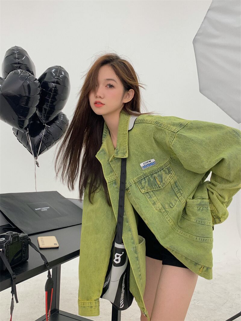 スタンダードグリーンジャケット オータムルーズ レトロ ストリート 秋物 10/5 秋冬 オータム ウインター ナチュラル mi4660599696586