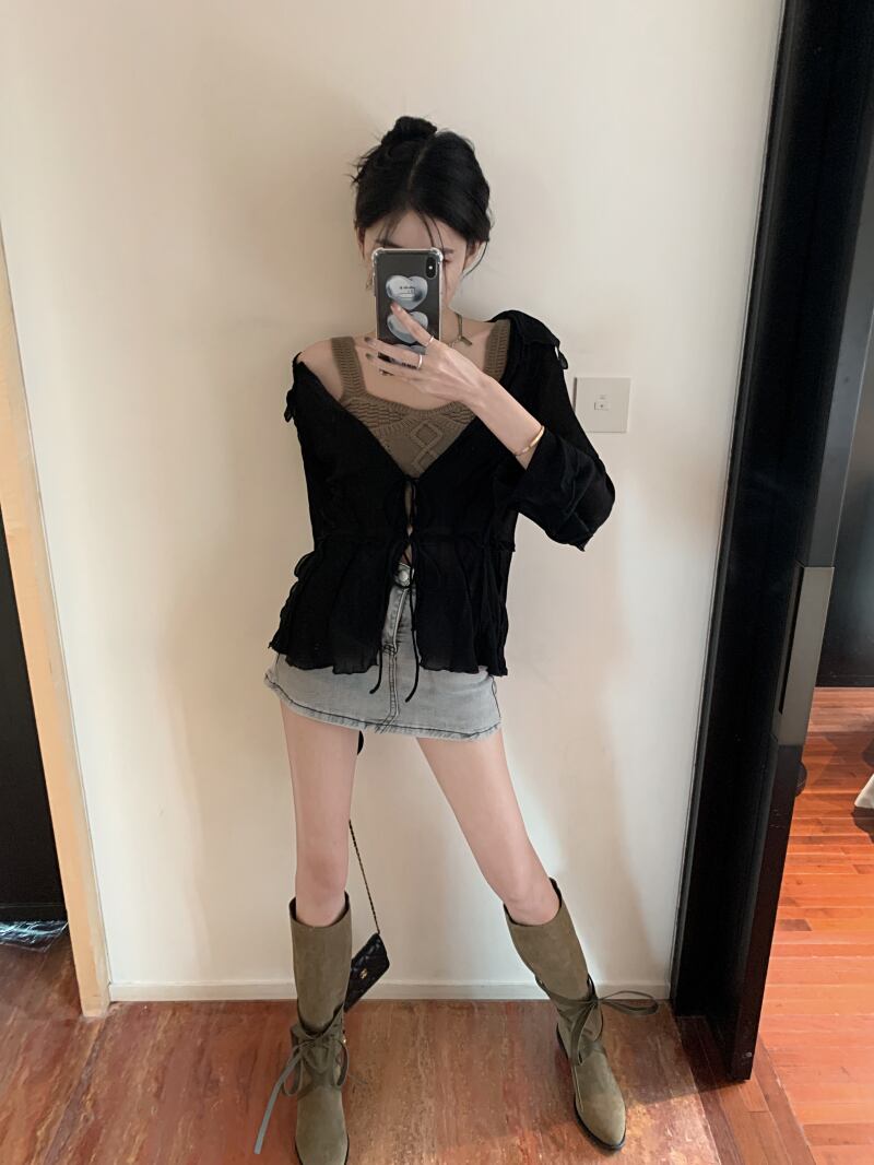 Tシャツ シャツ オータムカーディガントップス ロング レース 秋物 レースアップ 10/5 秋冬 オータム ウインター ナチュラル mi4696150065783