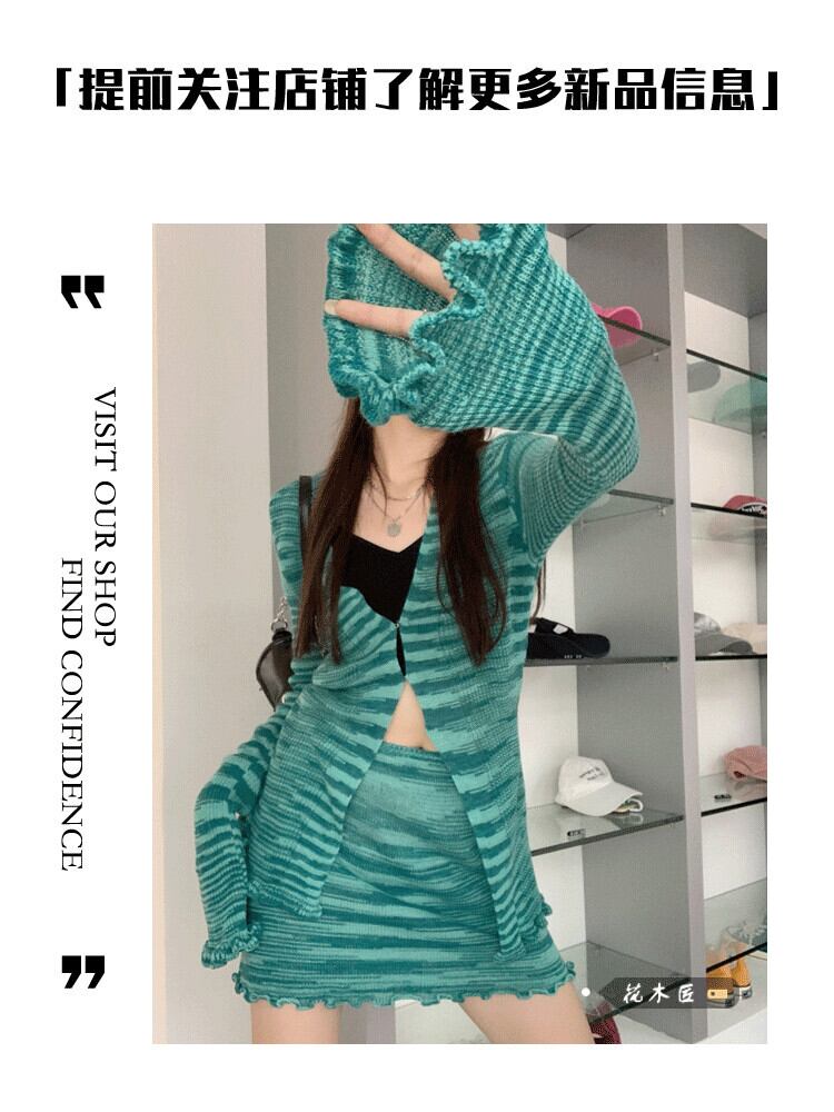 オータムグリーンストライプニットカーディガンスカート セット ストリート 秋物 10/5 秋冬 オータム ウインター ナチュラル mi4627997720331