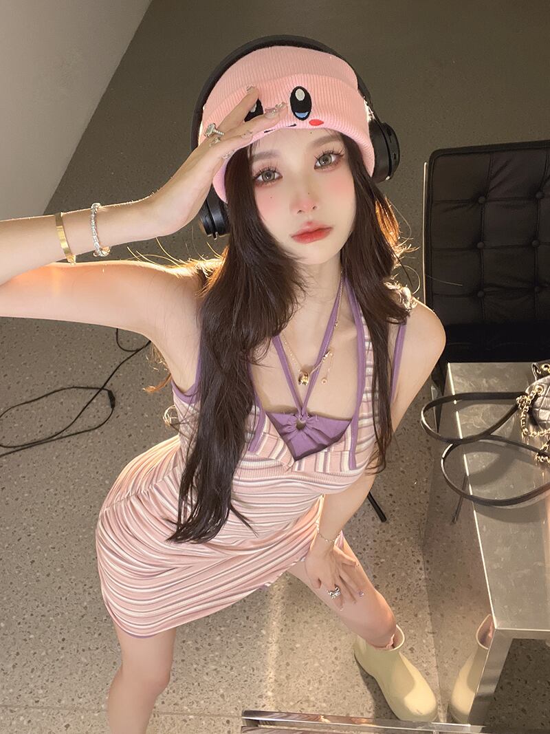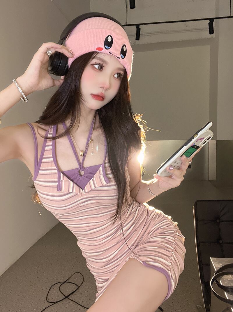 バンドストライプドレス サマースリムスカート 大人ガーリー スウィート キュート カジュアル 夏物 10/5 秋冬 オータム ウインター ナチュラル mi4642418047484