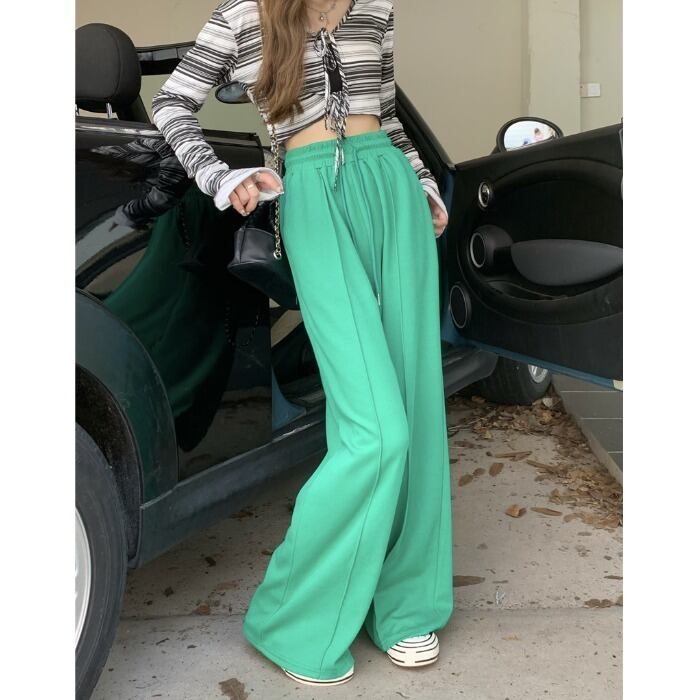 グレーギャザーハイウェストカジュアルパンツ オータムルーズ薄手 秋物 10/5 秋冬 オータム ウインター ナチュラル mi4692228190118
