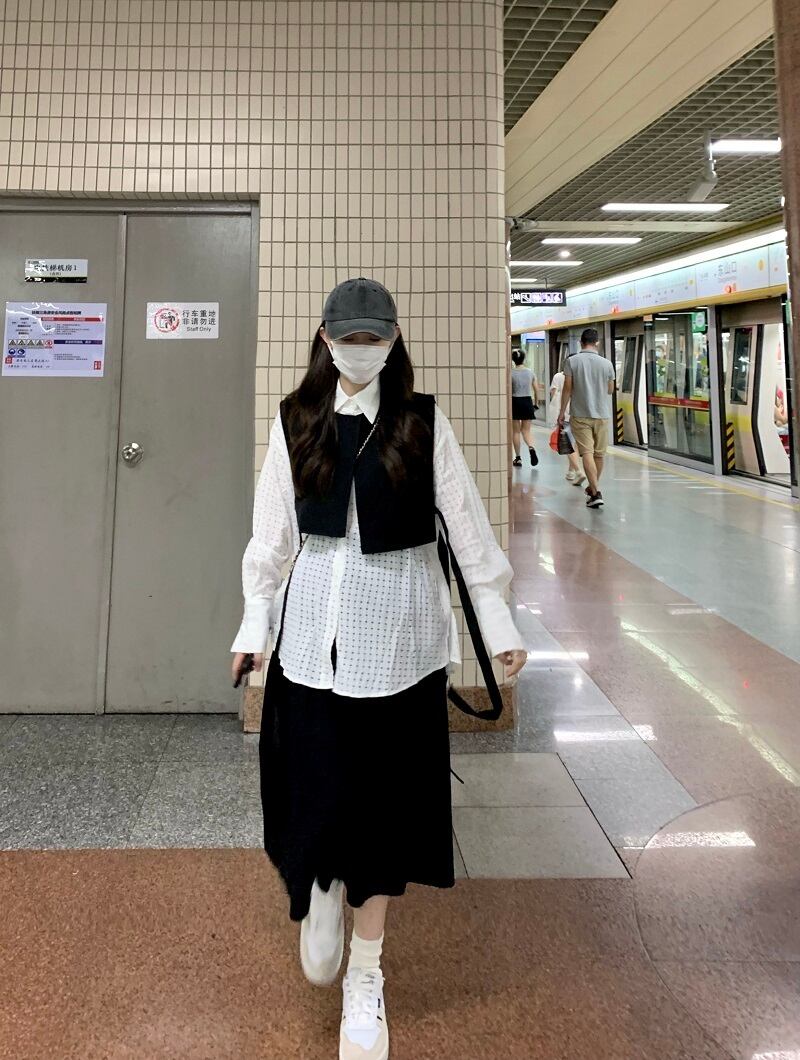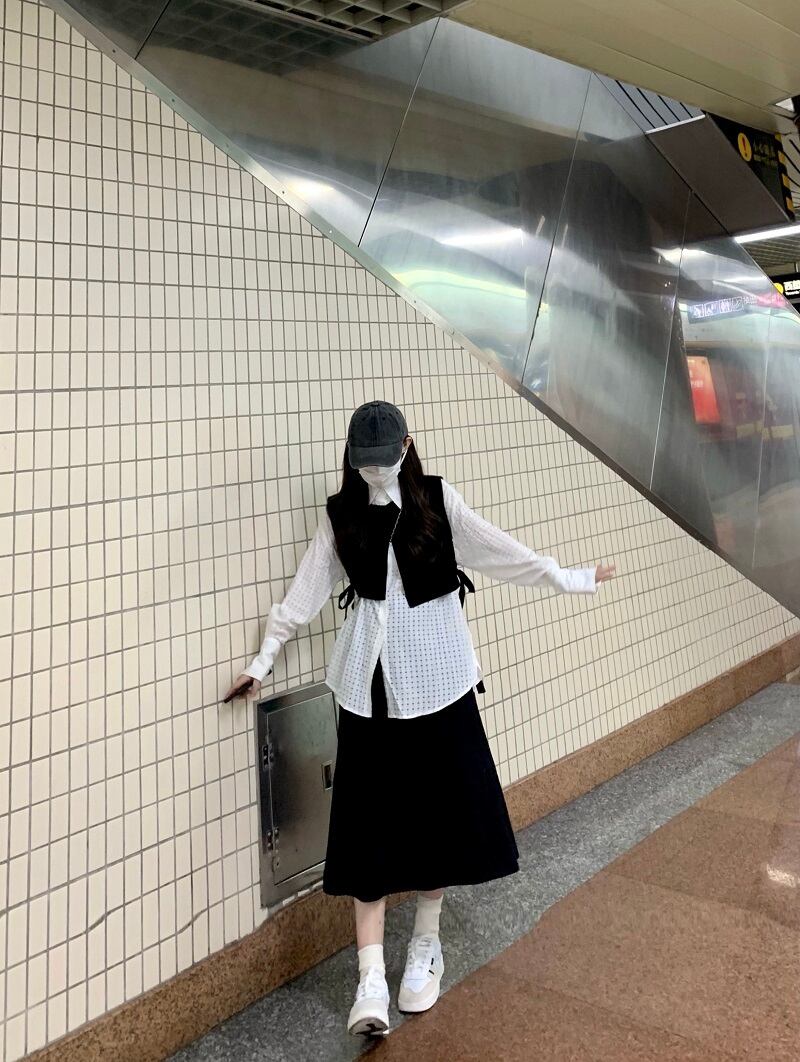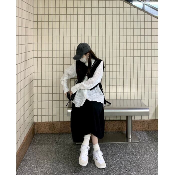 色:ブラックベストワンピース,白いシャツのワンピース,黒スカートワンピース