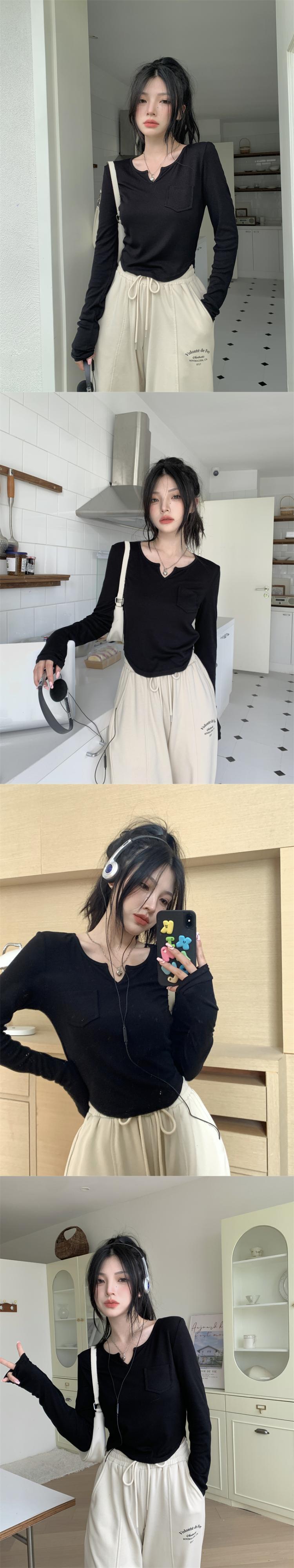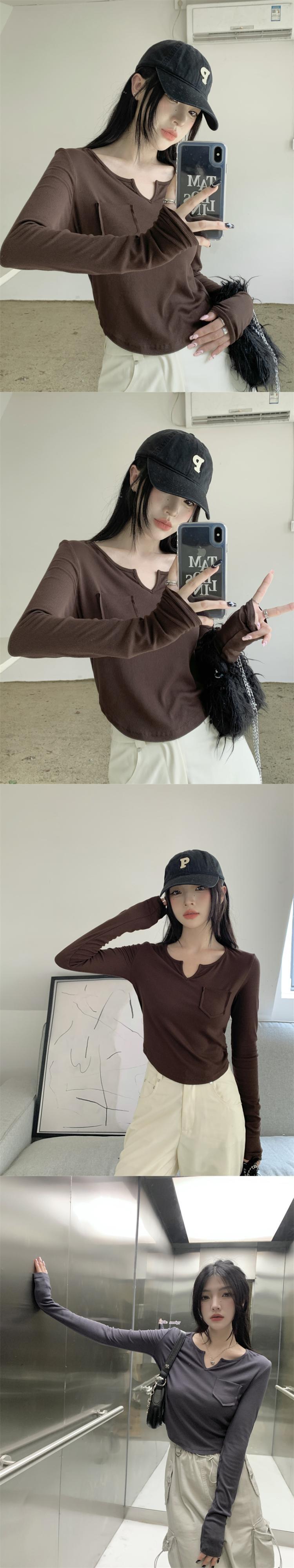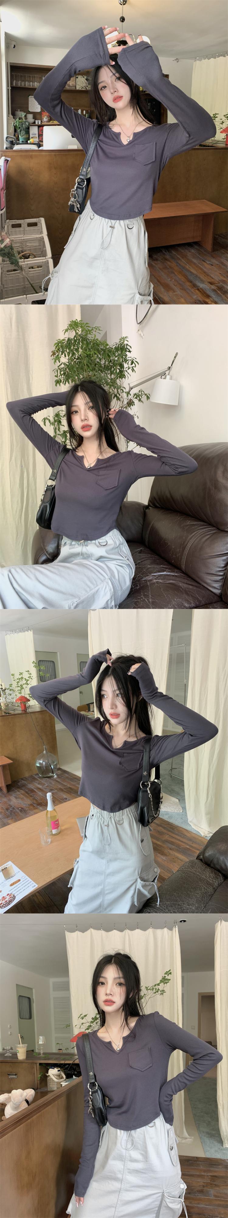 カジュアルTシャツ トップス オータムVネックショートスリム ロング 秋物 10/5 秋冬 オータム ウインター ナチュラル mi4660430576832