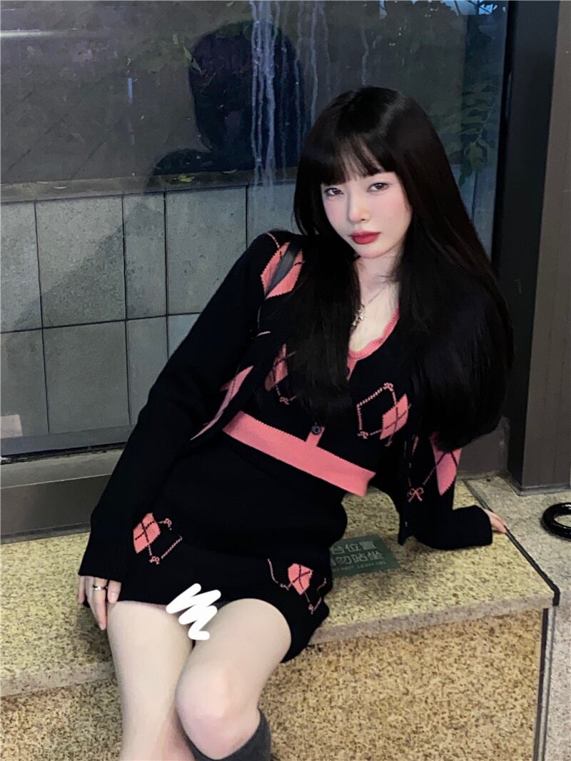 ニットスカート オータムカーディガントップス ショートセット 大人ガーリー スウィート キュート カジュアル 秋物 10/5 秋冬 オータム ウインター ナチュラル mi4690012103073