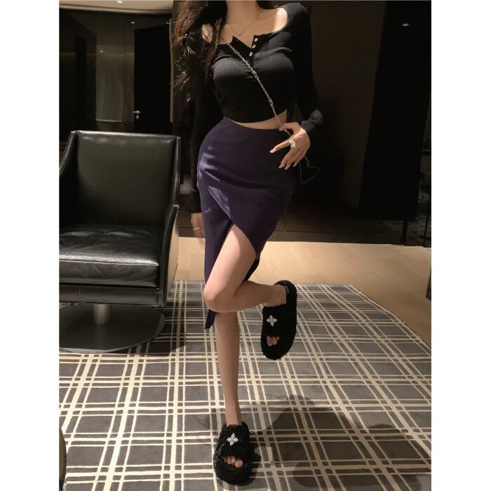 オータムショートスリムトップス スカート セット 秋物 10/5 秋冬 オータム ウインター ナチュラル mi4611218168532
