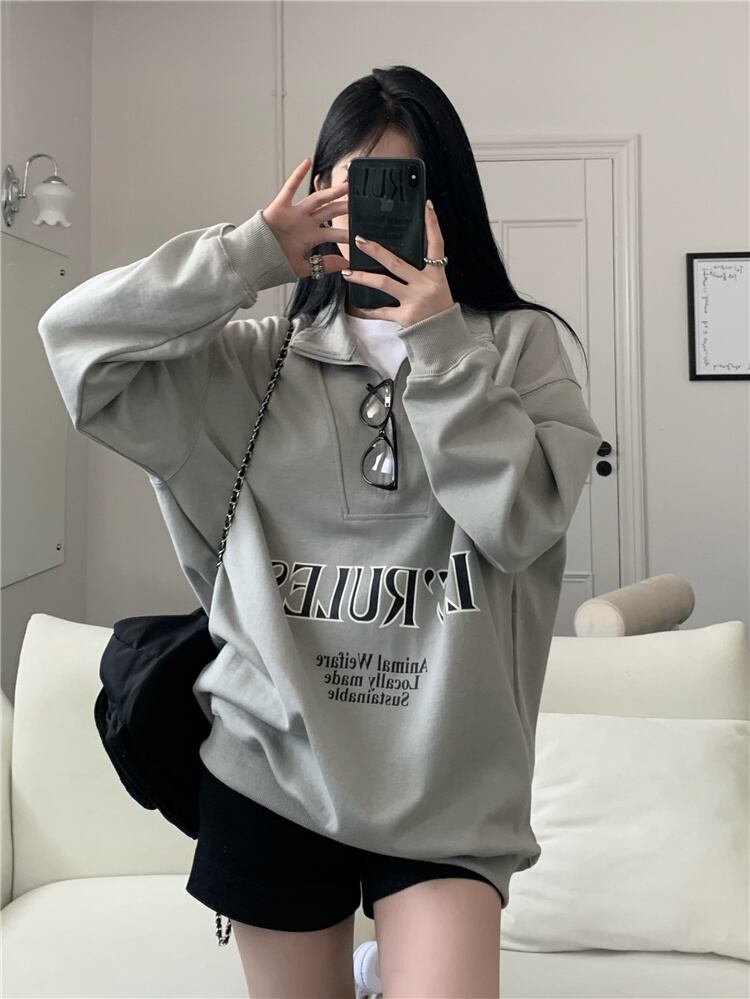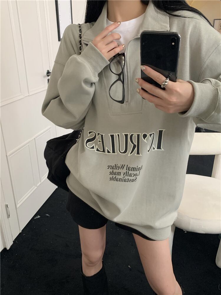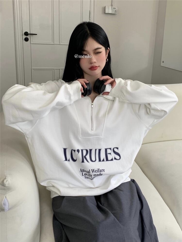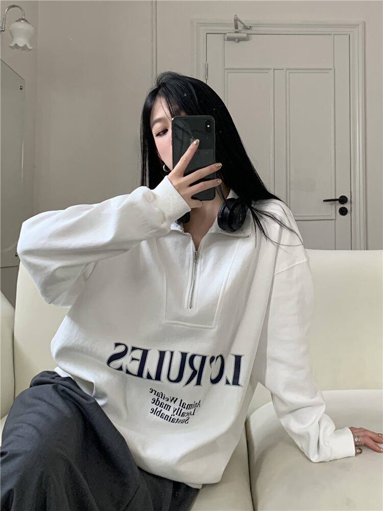 ホワイトジッパーセーター オータムスタイルルーズトップス ロング 秋物 10/5 秋冬 オータム ウインター ナチュラル mi4625524605211